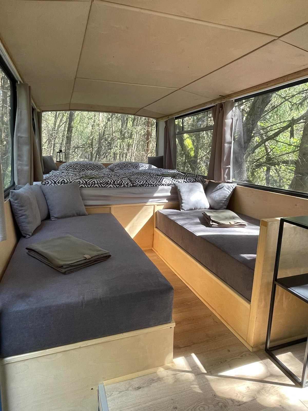 L'autobus si trova in un pittoresco ambiente naturale vicino al campo da golf, con vista sul castello di Bojnice, che potrai goderti dal letto o dal tetto dell'autobus. Rilassati e riconnettiti con la natura in questa indimenticabile fuga dalla realtà.