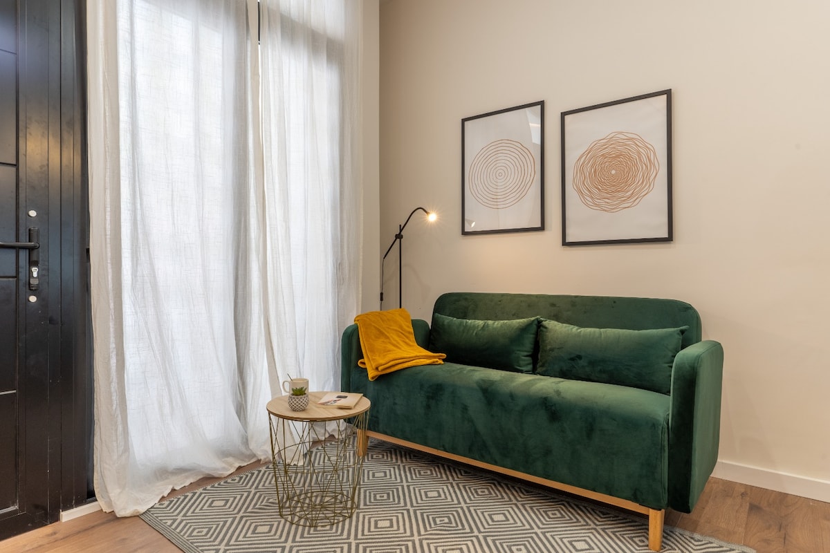 Luminoso, soleggiato e spazioso appartamento ad angolo, a 20 minuti a piedi, 10 minuti in bicicletta e 10 minuti in autobus dal centro storico. Ristrutturato nel 2016, è completamente attrezzato e arredato, con aria condizionata, riscaldamento centralizzato e 4 balconi. La zona è tranquilla e sicura. A 5 minuti a piedi dalla casa c'è un tram che ti porta alla spiaggia, e nelle vicinanze c'è una nuova pista ciclabile. C'è una Smart TV dove puoi utilizzare il tuo account Netflix, cavo da 1 Gb e Internet veloce da 600 Mb Alloggio per uso turistico