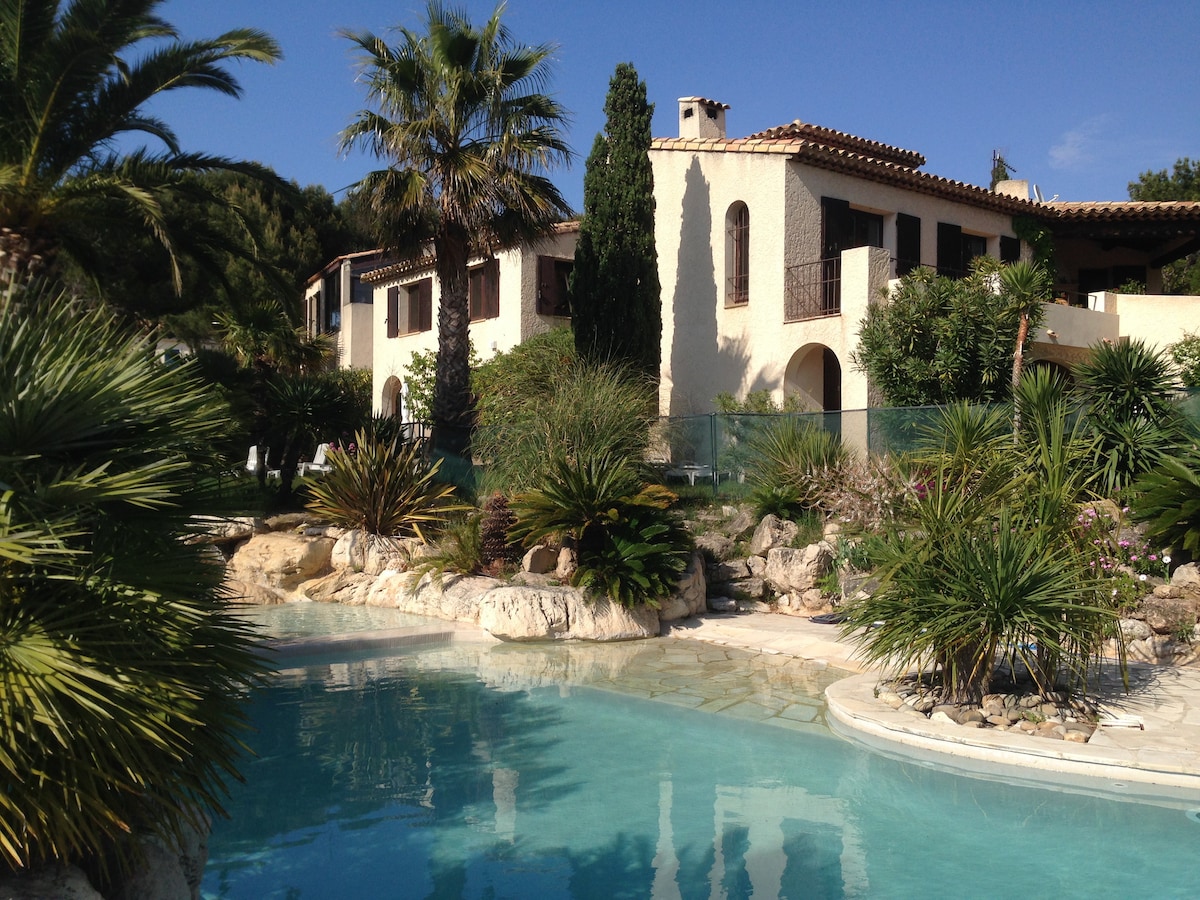 Détendez vous dans ce charmant appartement au dessous d’une villa provençale, face à la pinède, et les vagues en contrebas. Décoré avec amour pour des vacances inoubliables. Profitez de la vue sur la mer, avec accès direct par la pinède Privee, et halte pique nique. L’appartement est situé au dessus de la calanque du rouet et de sa grande plage de sable fin. kayaks à votre disposition pour vos balades.. Le soir venu, vous pourrez apprécier le calme, le lever de lune et les étoiles.