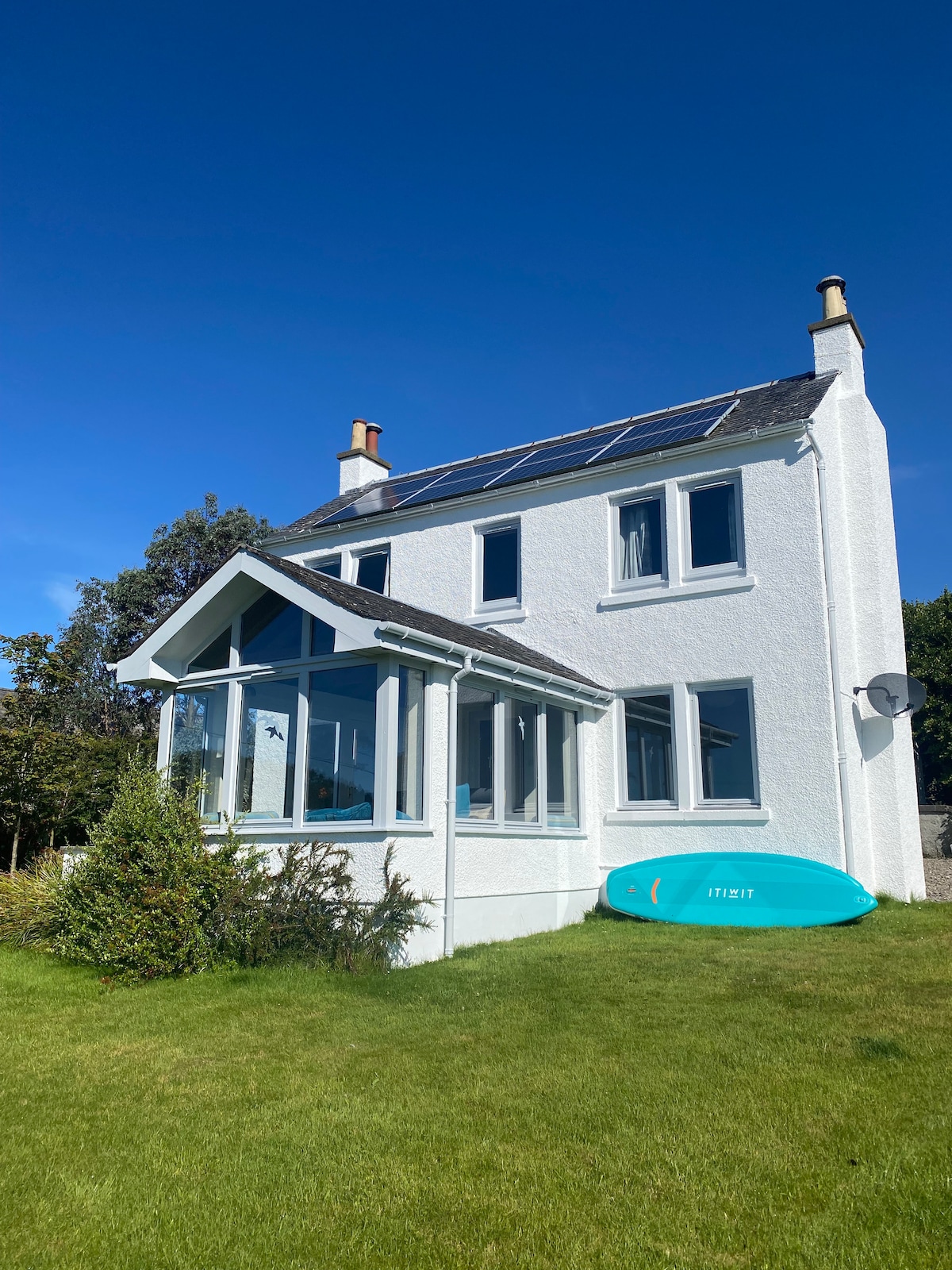 Welcome to this peaceful, stone-built retreat on the stunning Kintyre Peninsula overlooking Islay and Jura and the Sound of Gigha. It is 5 minutes to Gigha and 20 minutes to Islay ferries. Perfect for couples, walkers, cyclists and remote workers, this pet-friendly getaway offers sweeping coastal views, a bright conservatory, and the comforts you may need—including off road parking, Wi-Fi, an EV charger and a log burner. It is a 10 minute walk to the shore and 10 from Beacharr standing stone.