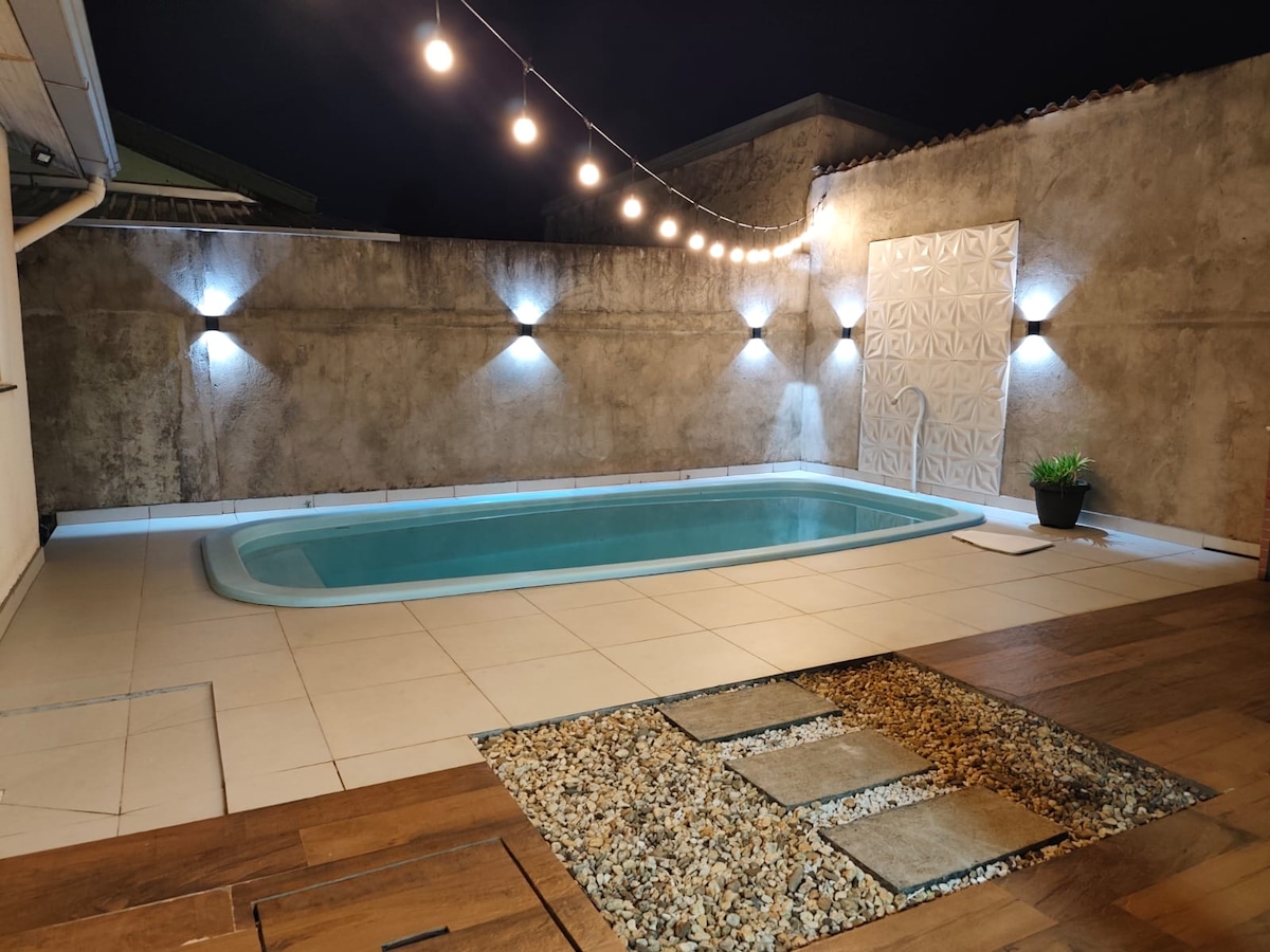 Casa con 3 camere da letto, può ospitare fino a 7 persone Disponibile anche per SPETTACOLI RURALI Questo alloggio è ben posizionato in un quartiere vicino al centro 02 Aria condizionata Frigo, Microonde Espaço Gourmet con barbecue Lavatrice spiedini e griglie 01 Letto matrimoniale 06 letti singoli Comodo divano letto Cancello elettronico Piscina Biancheria da letto Alcuni asciugamani, è sempre meglio averne di più. Mercati nelle vicinanze