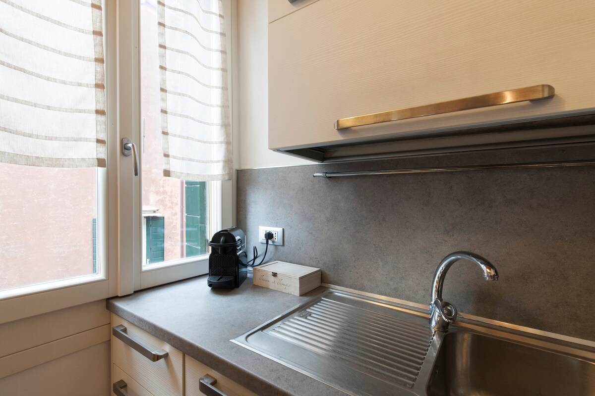 VENICE ACCESS FEE FREE (only city tax 4€ x person x day ) Newly renovated and very bright 50 sqm apartment, located in the historic center of Venice, in the Castello district, where you can experience the true Venetian lifestyle. The apartment features a double bedroom and a comfortable sofa bed, one bathroom, a living room, and a fully equipped kitchen. A crib and high chair are also available. Bed linen, extra pillows, and soft towels are provided. Check- in is not available after 8 pm