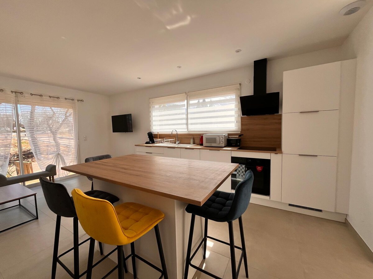 In piena campagna, a 3 minuti di auto o 20 minuti a piedi dal lungomare del villaggio di Castelnou, e a 5 minuti di auto da tutti i servizi (Thuir), l'alloggio si trova sul terreno della casa principale ma è completamente indipendente e dispone di una terrazza privata. Il parcheggio dei veicoli è in comune con i proprietari e gli abitanti dei luoghi e totalmente recintato. L'alloggio si trova a 15 minuti dal casello sud di Perpignan, a 20 minuti dal centro di Perpignan e a 35 minuti da Canet.