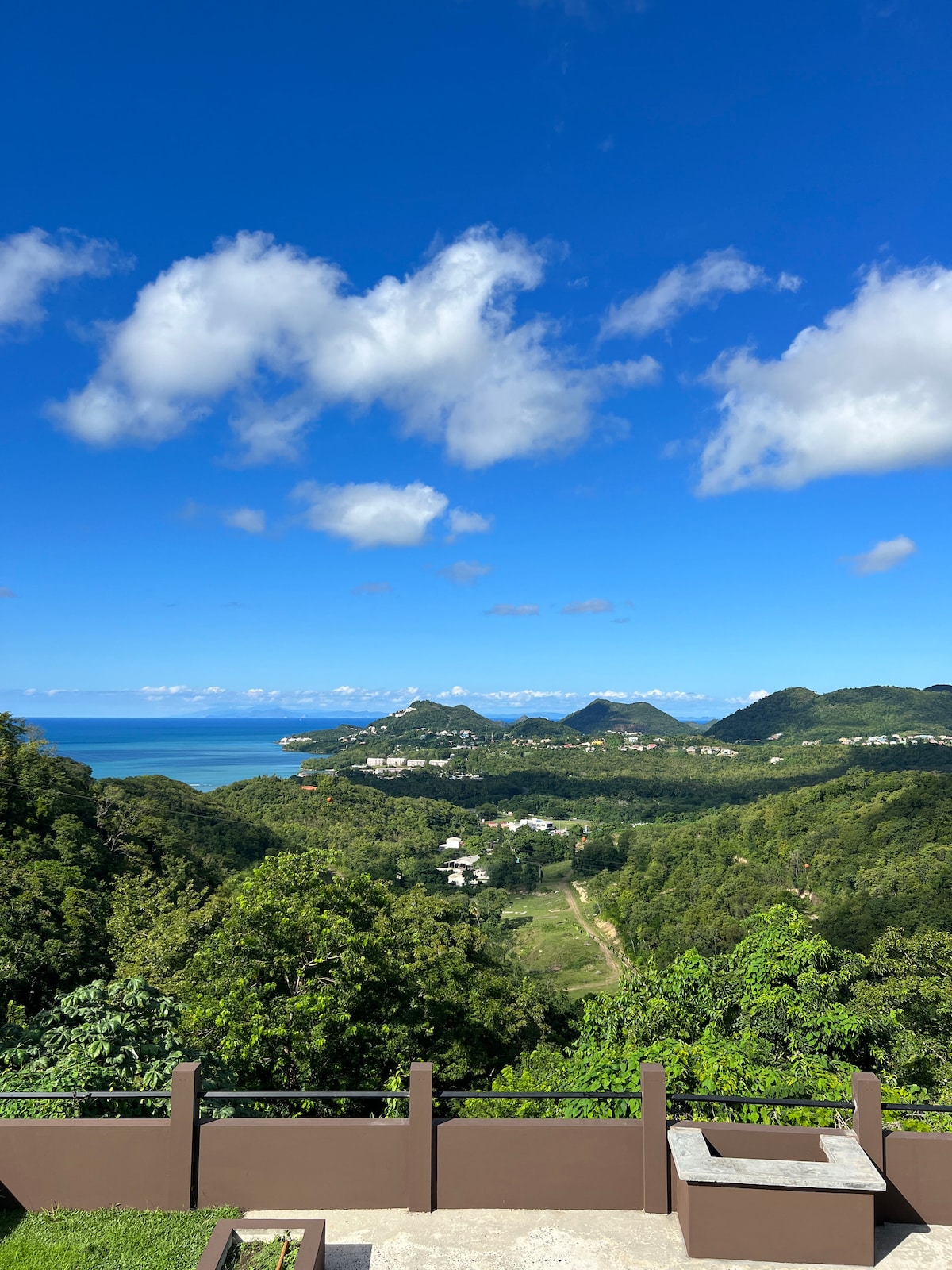 Un caloroso benvenuto nella nostra bellissima Villa Vino Lucia e nella cantina di Helen. Questo gioiello nascosto è immerso nella collina di Fisherman's Cove, con vista sul maestoso mare blu e sulle lussureggianti montagne verdi di Marigot Bay, a Santa Lucia. Questa nuovissima casa vacanze ha aperto i battenti nel giugno 2024 e dispone di 4 appartamenti con una camera da letto (130 metri quadri), un monolocale, una terrazza con piscina e una fantastica cantina (apertura a fine luglio). Include cucina completa, aria condizionata, TV, Internet e cassetta di sicurezza. Ti piacerà questo posto