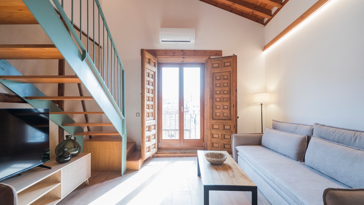It is a incredible designed loft in the Old Town of Toledo, with open spaces and with an fantastic refurbishment; We wanted to respect the original elements of the apartment to preserve the essence of the past while giving the comfort of day to day with a fresh air. Examples of these are the bricks of Islamic period or the beams of the XVIII century We offer a free parking space for a small car (upon availability) A few steps from "El Greco Museum" and overlooking the "Valle de Toledo"