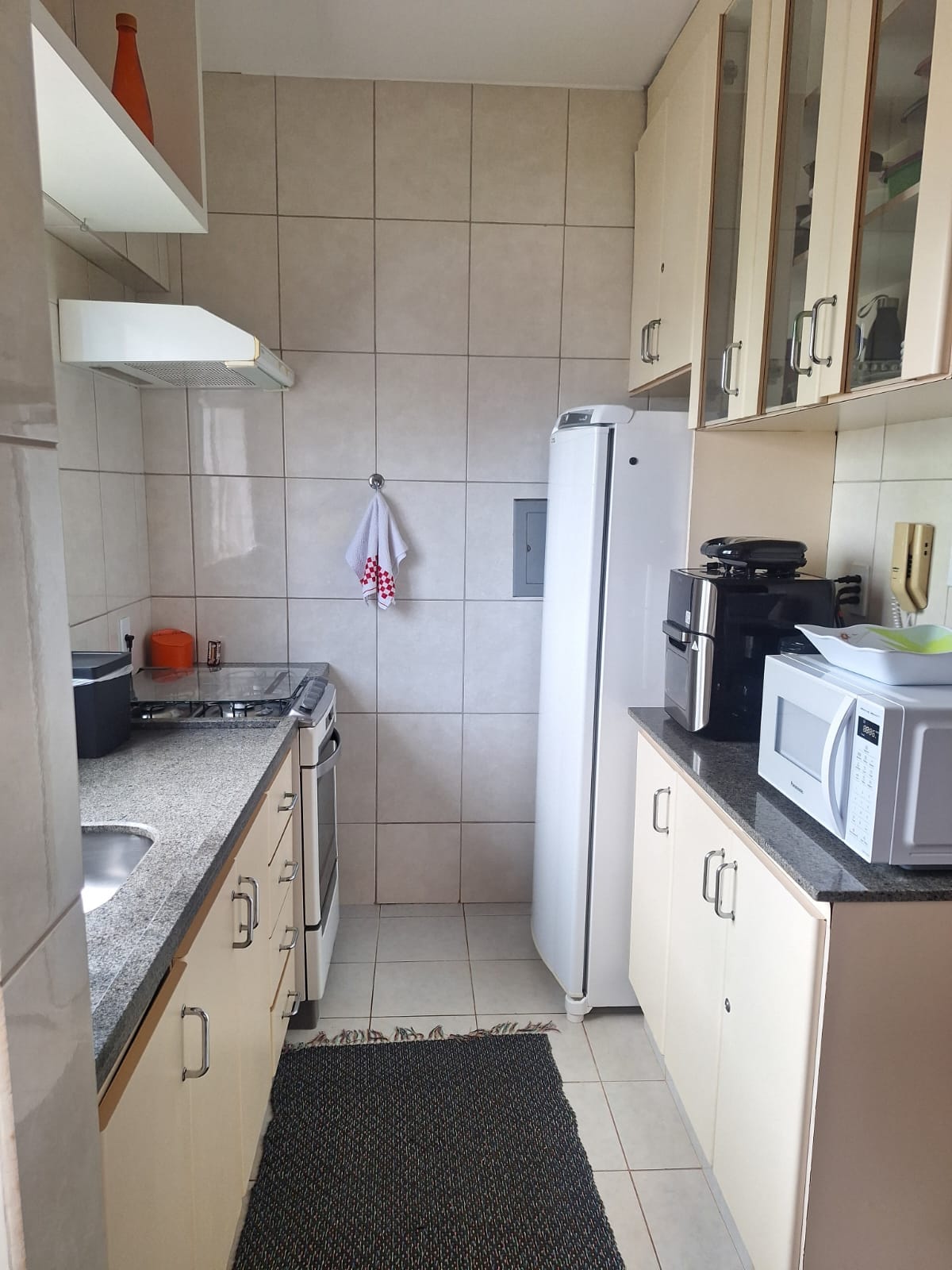 Piccolo Kitnete, per 01 persona, accogliente e super ben posizionato, vicino all'UEM, Nuovo centro, mercato, ristoranti, mercato comunale. Dispone di 1 letto singolo, armadio, TV LED da 32" con TV box, piano di lavoro con sedia, ventilatore a soffitto, ventilatore da tavolo, minibar, piano cottura, forno a microonde, lavandino, armadi, bagno con box in vetro. Biancheria da letto e da bagno e coperte in microfibra. Tranquillo edificio per famiglie con lavanderia e wifi . Non c'è spazio nel garage.
