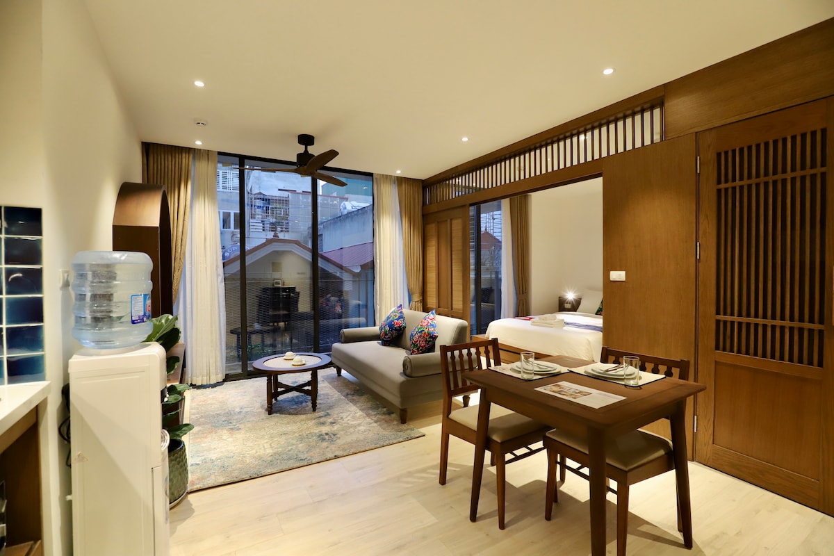 Monolocale di recente ristrutturazione e di ispirazione asiatica con soffice letto king-size, TV, cucina completa, bagno privato, parcheggio gratuito, guardia di sicurezza e servizio di pulizia. Situato su una delle principali strade, Phan Ke Binh, nel cuore del quartiere degli espatriati giapponesi di Hanoi, a pochi passi da ristoranti, caffetterie, grandi magazzini Lotte, hotel Daewoo e dallo zoo di Hanoi.