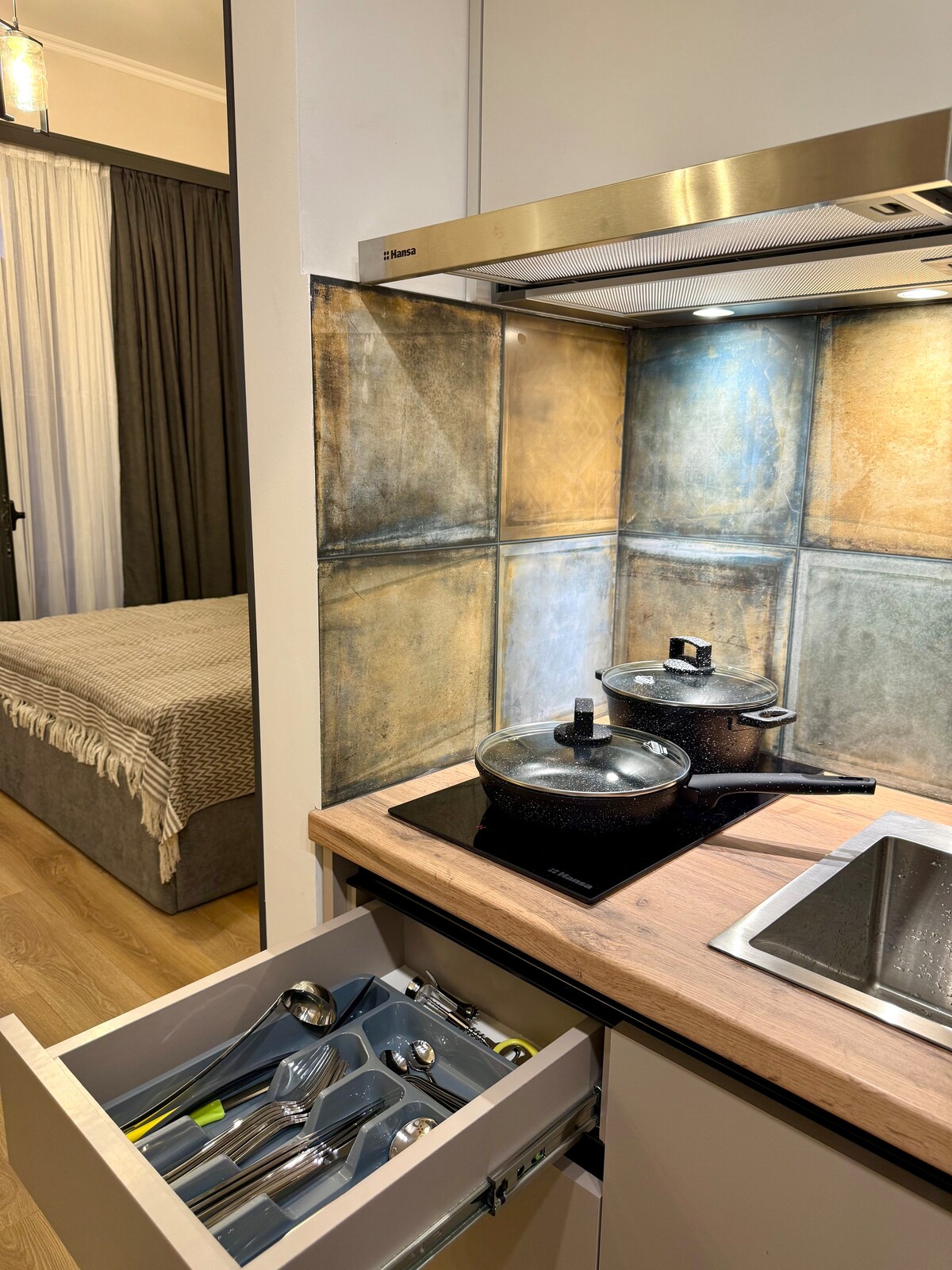 Fuga nel tuo paradiso privato di intrattenimento a Kutaisi! Che fuori piova o faccia un caldo torrido, il nostro appartamento è il rifugio perfetto per rilassarsi, riposarsi e divertirsi, situato a soli dieci minuti a piedi dal centro della città. Entra in un appartamento elegante e confortevole progettato sia per il relax che per l'intrattenimento. Lo spazio è il tuo cinema personale e la tua sala giochi, tutto in uno.