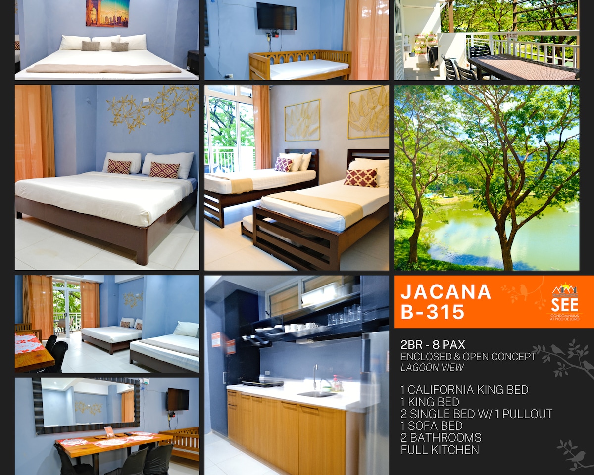 Goditi la vista sulla laguna di Pico de Loro soggiornando nella nostra spaziosa suite con 2 camere da letto! Solo 1 camera è chiusa, mentre l'altra è aperta sul soggiorno. La nostra casa dispone di 3 letti singoli con secondi letti estraibili, 1 divano letto matrimoniale e 2 letti singoli pieghevoli. Alloggio per un massimo di 9 ospiti, compresi i bambini. Non sono ammessi animali domestici. La cucina è completa di piano a induzione, frigorifero, forno a microonde, stoviglie e utensili da cucina. La nostra unità dispone di un balcone con vista sulla laguna.