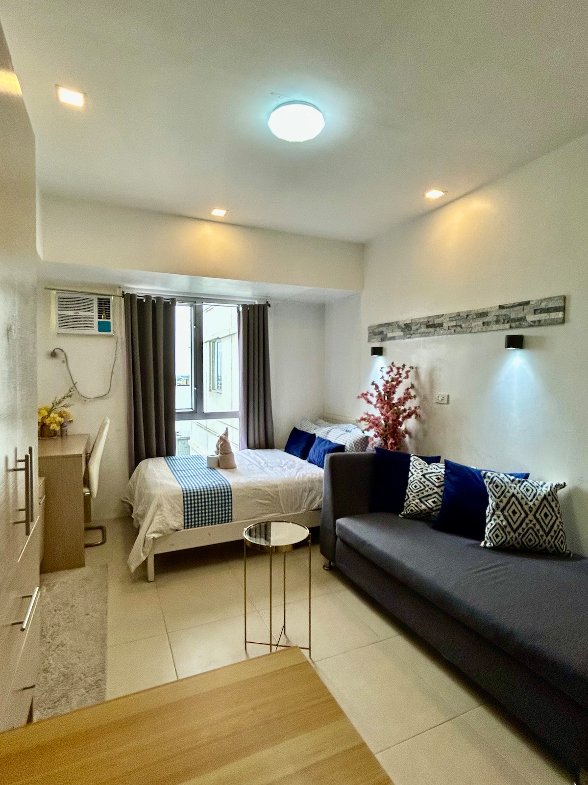 Soggiorna in questo incantevole ed elegante appartamento monolocale completamente arredato e arredato con gusto, con una selezione di belle arti. Questo elegante alloggio si trova vicino alle mete imperdibili di Cebu e Mandaue City. Si trova vicino a chiesa, ospedale e banche e a soli 30 minuti dall'aeroporto di Mactan e a soli 10 minuti dall'Ayala Center e dai centri commerciali SM City Cebu. Dispone di internet, letto matrimoniale, ref, smart tv, workdesk, fornello a induzione, pentola per il riso, piatti, tazze e utensili. Viene fornito con asciugamani e lenzuola.