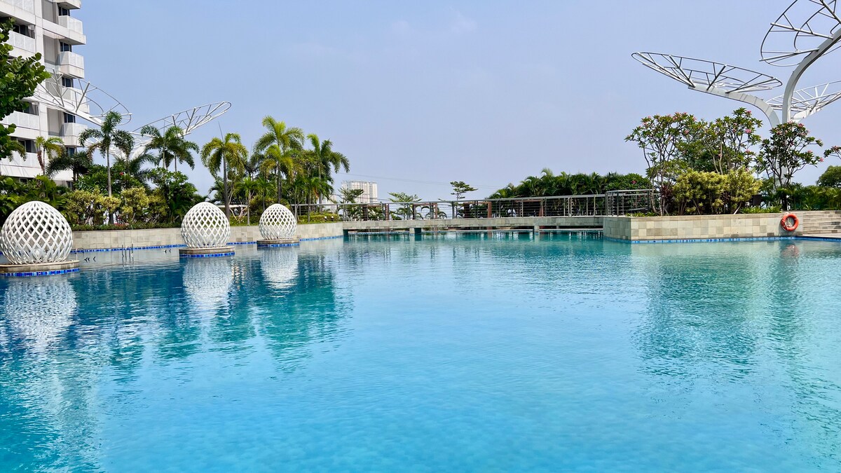 Ti diamo il benvenuto nella tua vacanza da sogno in Indonesia! Che tu sia qui per rilassarti, esplorare o ricaricarti. Questa unità è spaziosa Cosa ti piacerà: Atmosfera 🌴 tropicale. Vista 🌅 all'alba e lago sereno. 🌿 Sky Garden Bliss. Servizi in stile 🏃♂️ resort. Paradiso 🍴 per buongustai. Non lasciarti sfuggire questa opportunità unica di soggiornare in un'unità da giardino con una vista impareggiabile. Prenota le tue date oggi stesso e inizia a pianificare la tua fuga perfetta! Prenota ora!