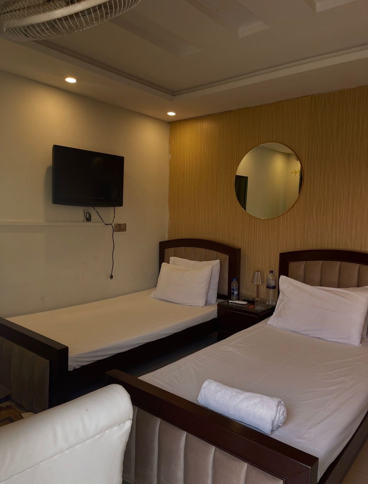 🛏️ Letto matrimoniale e balcone privato con vista mozzafiato. 📺 Smart LED da 55" e WiFi da 30 Mbps. 🍽️ Cucina moderna con elettrodomestici di alta qualità. ❄️ Condizionatori inverter e 💨 deodoranti automatici per l'aria. 🔐 Serrature digitali e arredi eleganti. 🏙️ Sopra il centro commerciale Zeta, a pochi passi dal centro commerciale Giga. 🌄 Vista sulla città e sulle colline. Perfetto per famiglie, coppie e ospiti aziendali. 🪪 È richiesta la CNIC (18+). 🚭 Vietato fumare e organizzare eventi. ✅ Prenota ora per lusso e serenità.