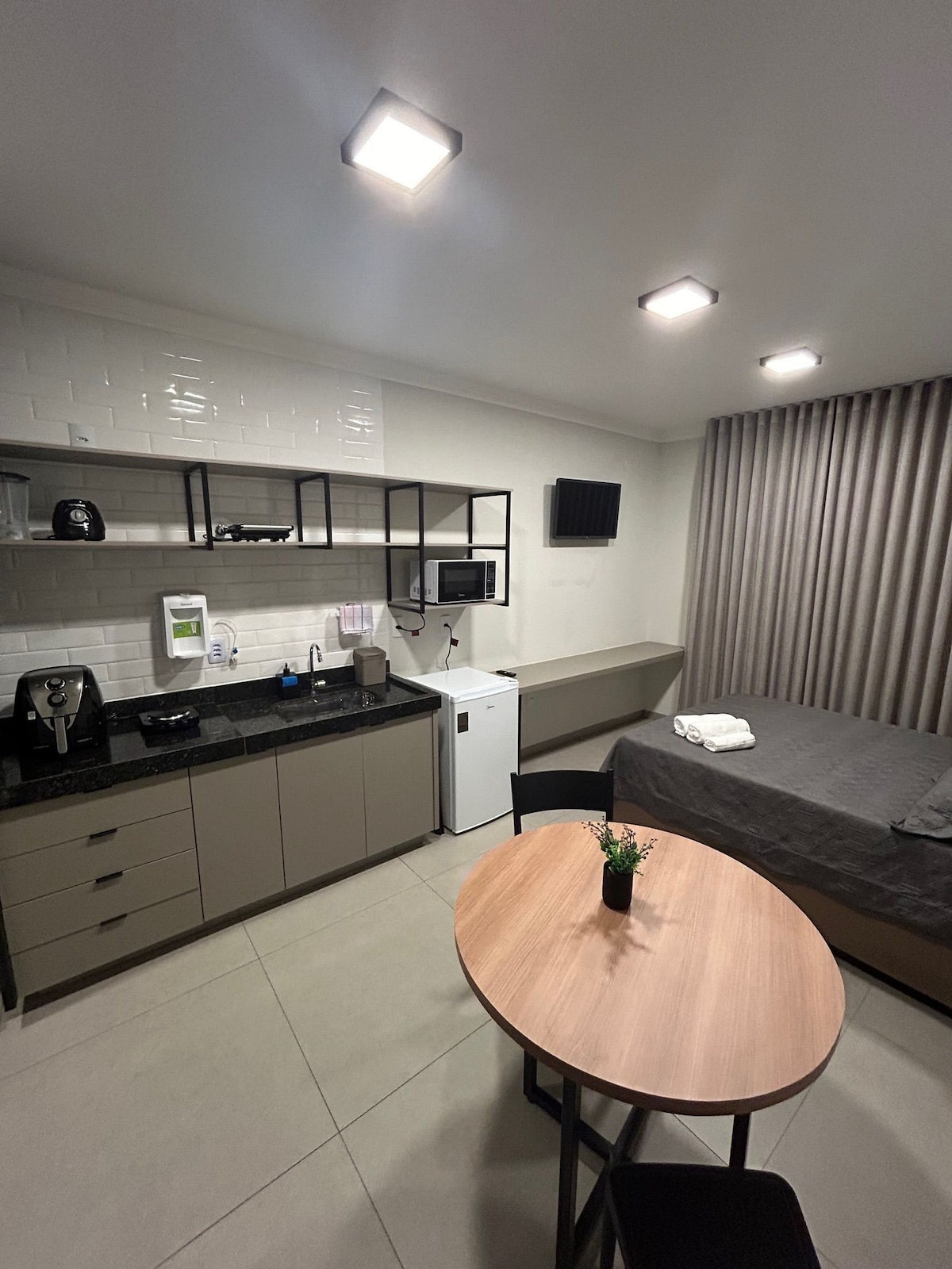 Confortevole e ben posizionato, vicino al centro commerciale Uberlândia, questo monolocale dispone di tutto il necessario. Può ospitare fino a 2 persone ed è ideale per soggiorni di lavoro o di piacere. Posizione privilegiata a 400 metri dal municipio, a 700 metri dall'UFU Santa Mônica e a 800 metri dall'UFU Educação Física, con facile accesso a palestre, bar e ai viali principali della città. Ambiente organizzato e funzionale. Importante: non dispone di un posto auto in garage.