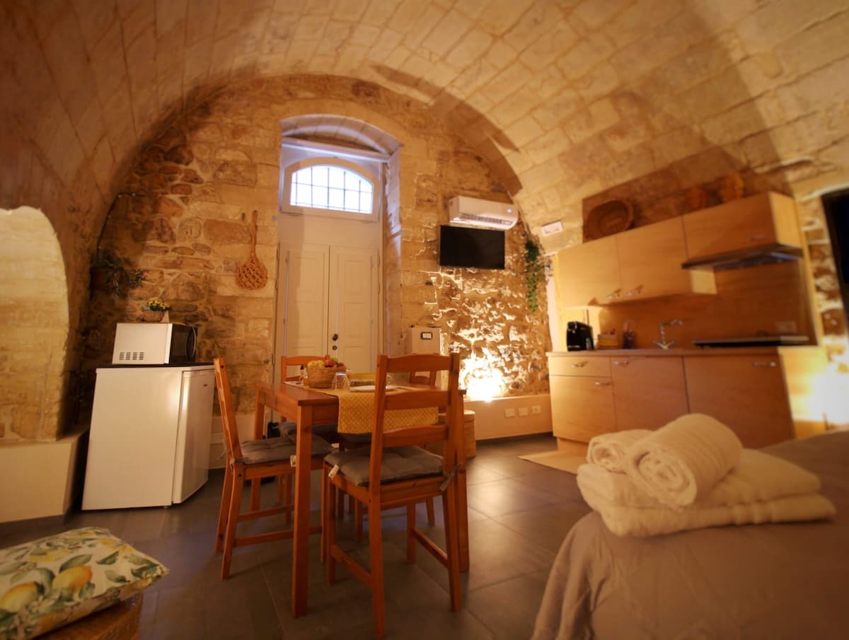 Abbracciate la tranquillità della campagna siciliana in questa Suite dal grande stile a soli 5 minuti da Ibla in auto. Il monolocale, adiacente alla casa Principale, è provvisto di un bagno con doccia, una zona living con tv e divano letto, una cucina con 2 fornelli e una zona notte con letto matrimoniale posta sul soppalco. Nella zona adiacente alla casa si trova un giardino con una piccola piscina per bambini utilizzabile anche dagli adulti in estate.
