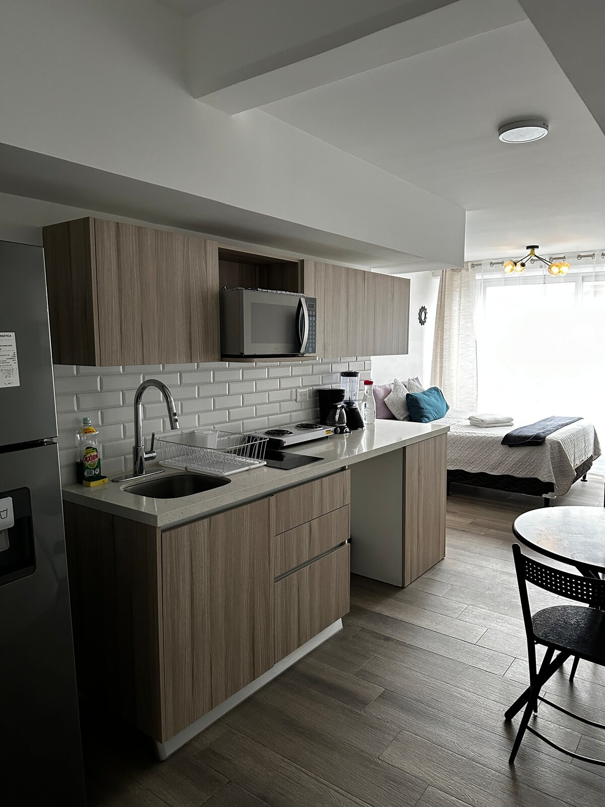 Ti diamo il benvenuto nel nostro monolocale, situato all'interno di un edificio sicuro di 5 appartamenti. Situato in una zona sicura, offre la vicinanza a tutti i servizi. A soli 7 minuti di auto dall'aeroporto SJO e con un supermercato a soli 90 metri di distanza. La lavanderia in loco e l'area comune offrono ulteriore praticità. Goditi Internet super veloce e il wifi di prim'ordine. Inoltre, Walmart, City Mall e Plaza Real sono tutti raggiungibili in 4-5 minuti di auto.