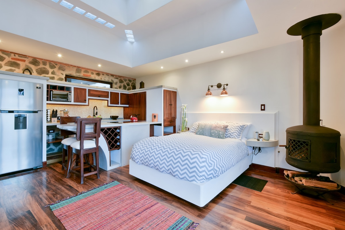 Ti diamo il benvenuto alla Pyramid House, situata nella tenuta Campanario, immersa nelle montagne sopra Antigua Guatemala. Questo rifugio sereno dispone di una camera da letto a forma di piramide con letto matrimoniale e bagno privato, una cucina moderna e un'accogliente zona giorno con splendide viste sulle montagne. Goditi 7 km di sentieri escursionistici e giardini paesaggistici. Scopri la vivace città di Antigua, a breve distanza in auto. Vivi il lusso e la natura in perfetta armonia alla Pyramid House. Prenota subito il tuo soggiorno!