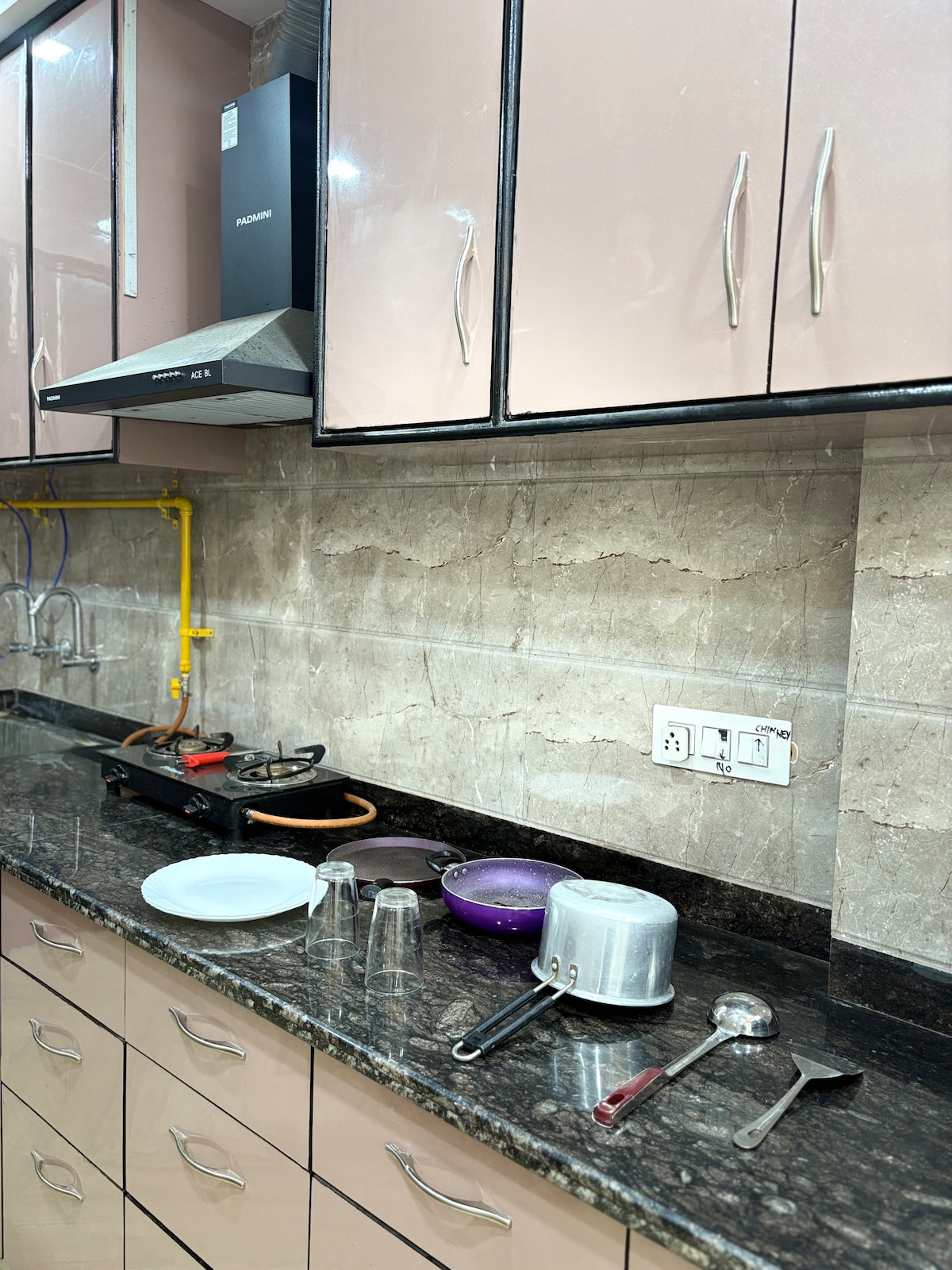 Moderno appartamento completamente arredato situato a New Friends Colony, nel cuore della zona sud di Delhi, con wifi ad alta velocità e Netflix, Amazon Prime e Hot-star gratuiti. In un condominio recintato con guardia di sicurezza 24 ore su 24, 7 giorni su 7, con parcheggio gratuito in strada. Dispone di 2 camere da letto, sala da pranzo e soggiorno separati con un elegante balcone e cucina completamente attrezzata con tutti i comfort per il bucato. Si trova a pochi passi da una stazione della metropolitana, da ospedali e da un complesso commerciale con tutti i principali ristoranti, tra cui McDonald's, Domino's e KFC