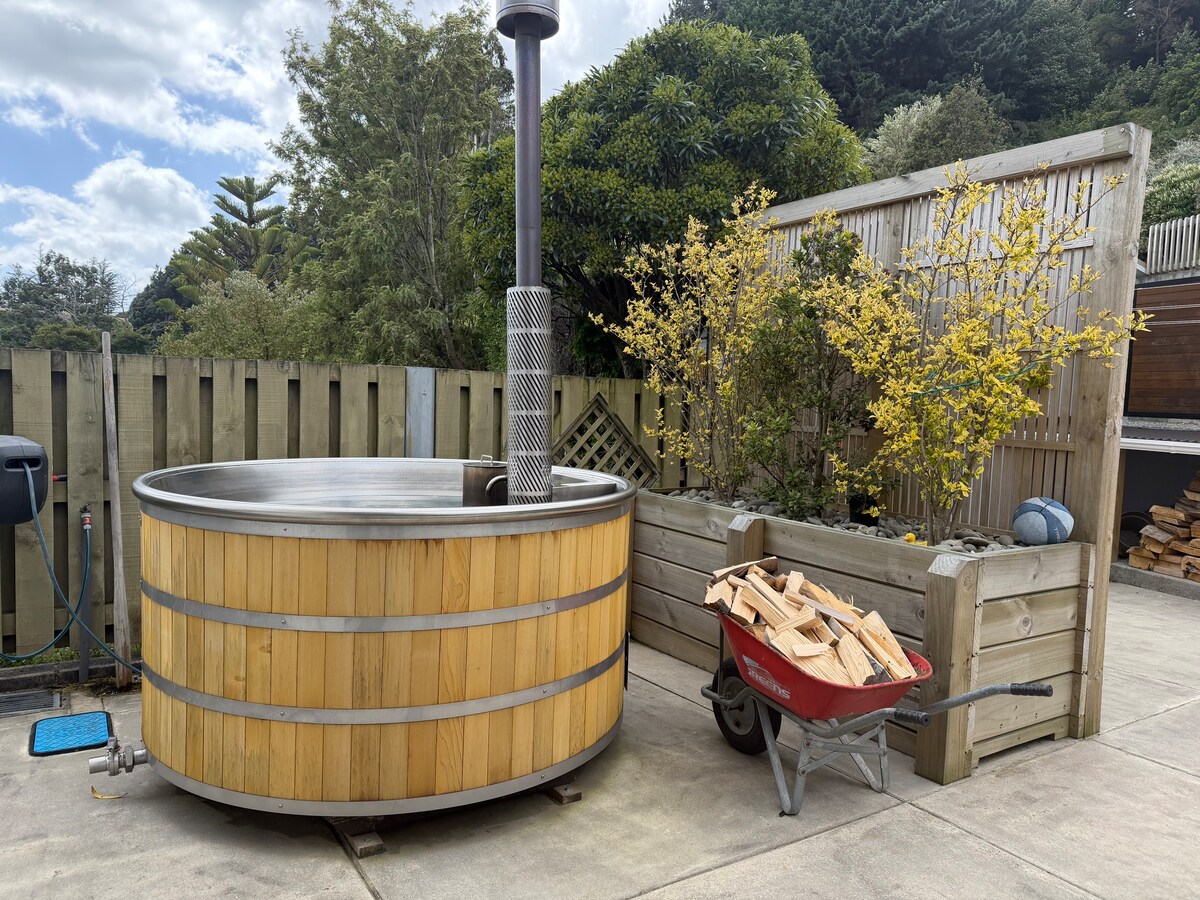 Immerso nel grazioso sobborgo di Vauxhall e alle porte della penisola di Otago, troverai un incantevole rifugio privato. Lungo un sentiero in pendenza e al livello inferiore della nostra casa, avrai il tuo ingresso indipendente con terrazza privata, un'elegante camera da letto, un salotto separato con divano letto, un ampio bagno soleggiato e un piccolo angolo cottura con tutto il necessario. Tranquillo e privato, con vista mozzafiato dalla camera da letto, dal salotto e dal bagno! Posizione ideale per esplorare la splendida penisola di Otago!