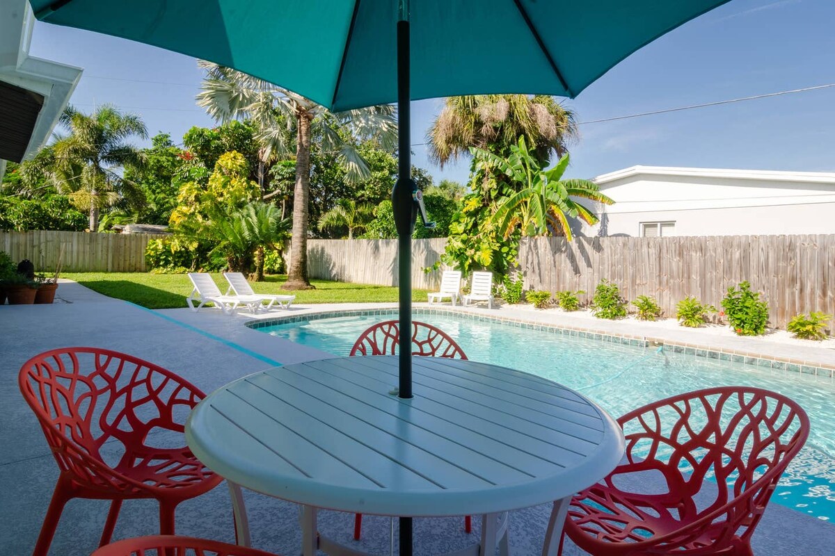 Retro Chic Decor wPrivate Pool Close to Beach 3br
