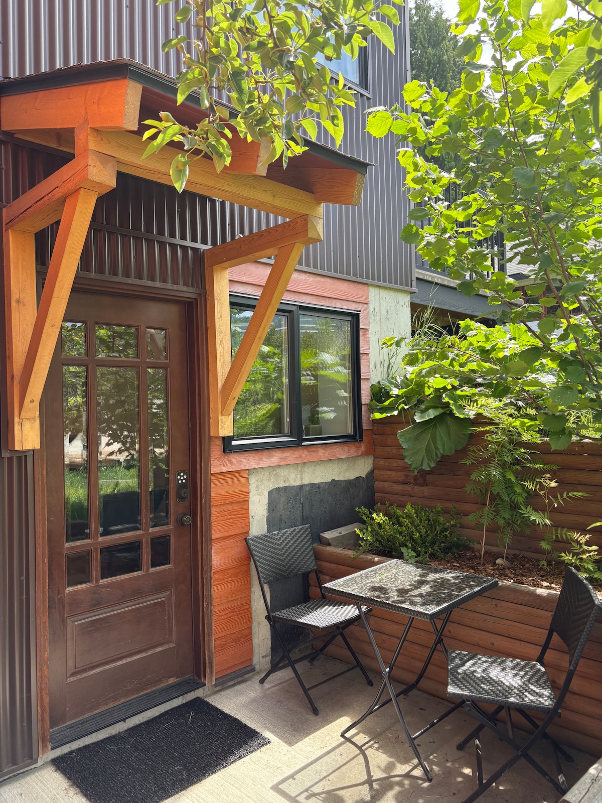 This is a brand new one bedroom apartment. You will feel renewed and rested in this quiet neighborhood "coach house". Come and go as you please with a completely private entrance. This Scandinavian style apartment features a beautiful 4 piece bathroom, kitchen (stove/microwave/fridge etc.), dining area, and lots of natural light. The apartment is fully air conditioned for the summer months. The space is very private and within walking distance of downtown.