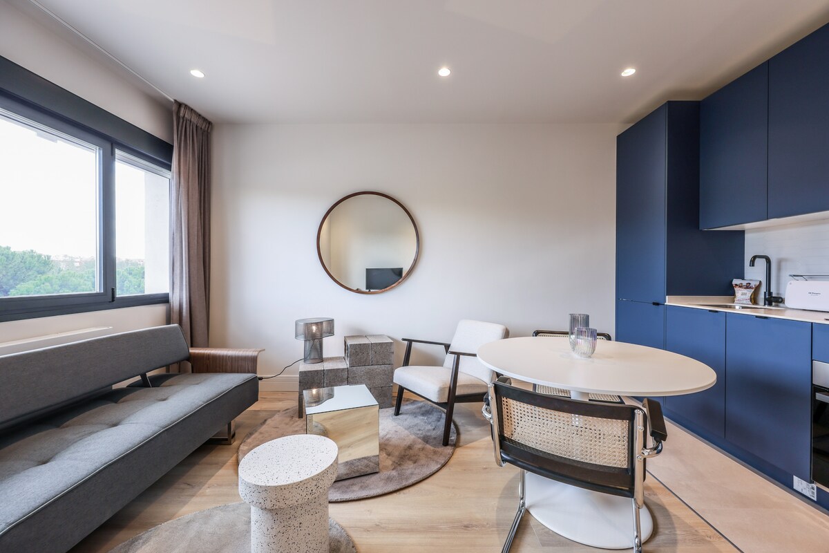 • Studio for up to 2 adults • Queen or double-size bed • Climate-neutral & fully carbon offset • Avg. 19 m2 • City views • Kitchenette • Access to a fully equipped shared kitchen • Access to shared laundry • Air conditioning • Regular professional cleaning • Local gym access included • Yoga mats & online yoga studio access included • Contactless access • Early check-in & late check-out (on request) • Fast WiFi • Smart TV • Free luggage storage • Baby crib available