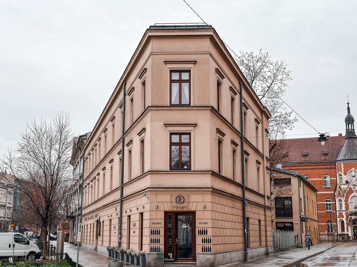 Bellissimo, completamente ristrutturato e spazioso appartamento (50 m²) nel cuore della città. L'appartamento si trova a 3 minuti a piedi dalla stazione principale dei treni e degli autobus e di fronte al più grande centro commerciale Galeria Krakowska. Le finestre si affacciano sul bellissimo parco Strzeleciki, che dà la sensazione incredibile di essere fuori città, con tutti gli alberi che lo circondano. La cucina ha elettrodomestici nuovi, tra cui forno, piano cottura, lavastoviglie e macchina da caffè Bosch integrata! L'alloggio ha un design unico