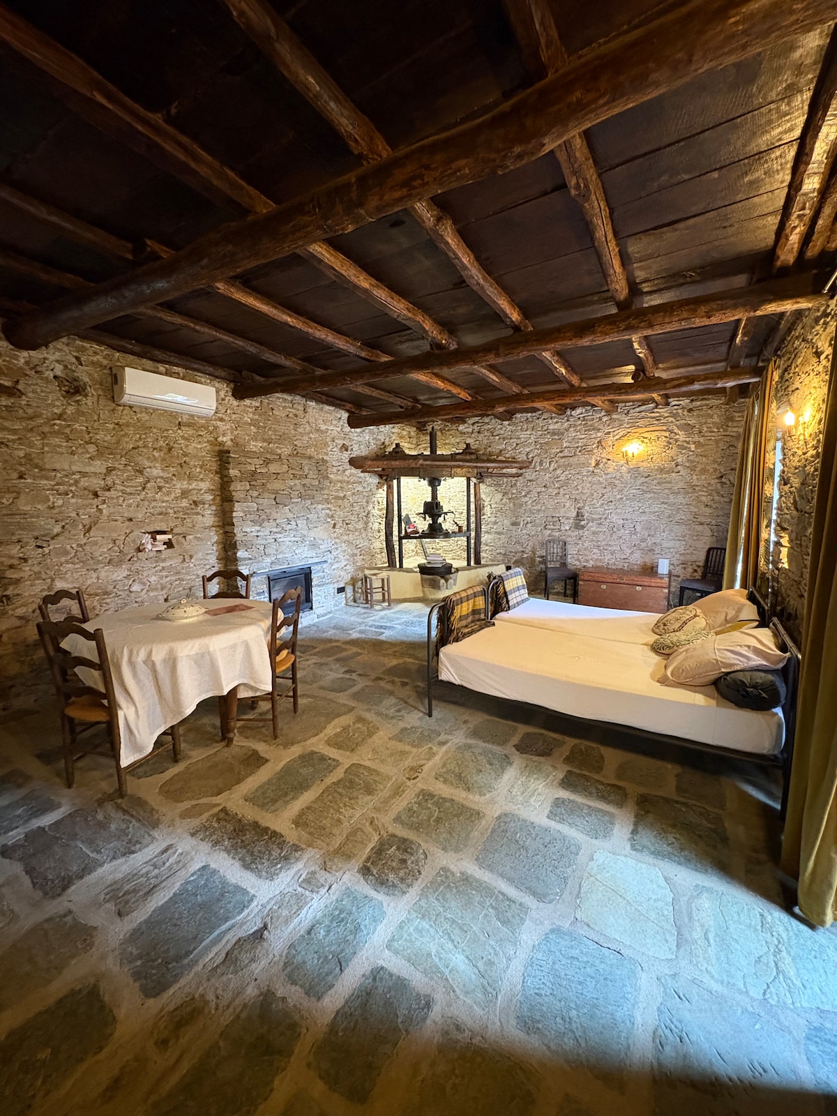 camera di 20 mq con bagno e angolo cottura completamente attrezzato: frigorifero, piano cottura, forno/forno a microonde, bollitore, macchina per il caffè, tostapane, tv, con vista sul villaggio e sul mare tra i castagneti, mare a 6 km, piccola terrazza con tavolo e sedie per godersi l'esterno la colazione non è inclusa, se lo desiderate possiamo fornire il necessario per la preparazione di una colazione e offriamo anche un servizio di consegna di pasti su ordinazione