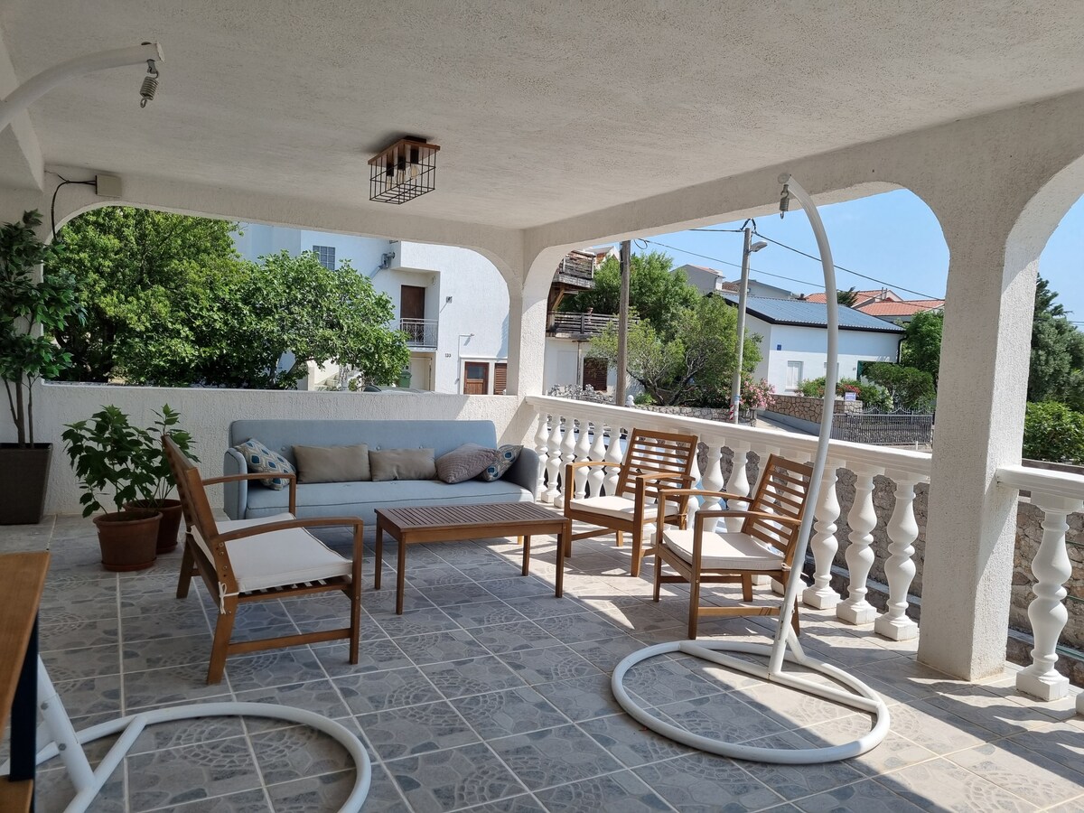 This is apartment on the first floor in our house: with kitchen, bedroom/living room and bathroom. It's 20 meters from the sea and beach. There are concrete, rocky and pebble beaches around, and we have our own beach! You’ll love my place: clean sea, beautiful view on Pag, green garden. It is great for couples, bikers and families. It has a variety of one day destinations to visit within 1 hour drive. Karlobag is the closest town, 4.5 km or 10 min away; Zadar is 1.5 hour, Senj is 1 hour from us.