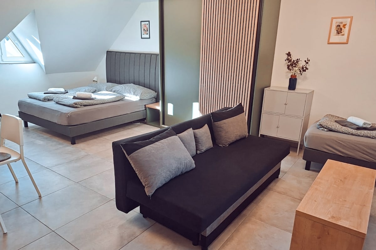 In questo tranquillo alloggio immerso nella natura, tutta la famiglia potrà riposarsi. Tranquillità, animali e un ambiente bellissimo senza il trambusto della città, anche se la città di Český Krumlov è a 10 minuti di auto, il famoso bacino idrico di Lipno a 30 minuti e la funivia Kozí plán a 15 minuti. Un gran numero di passeggiate, piste ciclabili e gite nei dintorni. Nel nostro alloggio vi offriamo tutto ciò che noi stessi apprezzeremmo. Cerchiamo di fare tutto per la vostra soddisfazione. Accanto all'appartamento c'è un recinto con delle pecore, che possiamo nutrire insieme. I proprietari sono anche massaggiatori professionisti