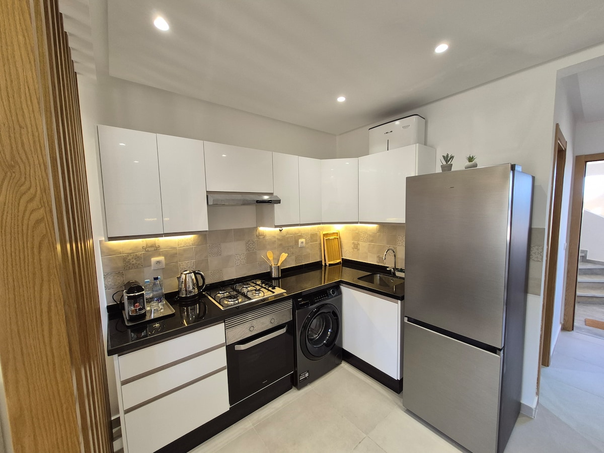 Scopri un appartamento elegante, piedi nell'acqua, nel cuore di Martil. Recentemente arredato, dispone di una camera da letto matrimoniale, un soggiorno, una cucina ben attrezzata e un bagno. Ascensore. WiFi in fibra ottica. Massimo 2 persone. Situato in posizione ideale vicino a servizi e ristoranti, questo appartamento è perfetto per un soggiorno rilassante. Atto di matrimonio è richiesto per le coppie marocchine. Venite a vivere un'esperienza indimenticabile!
