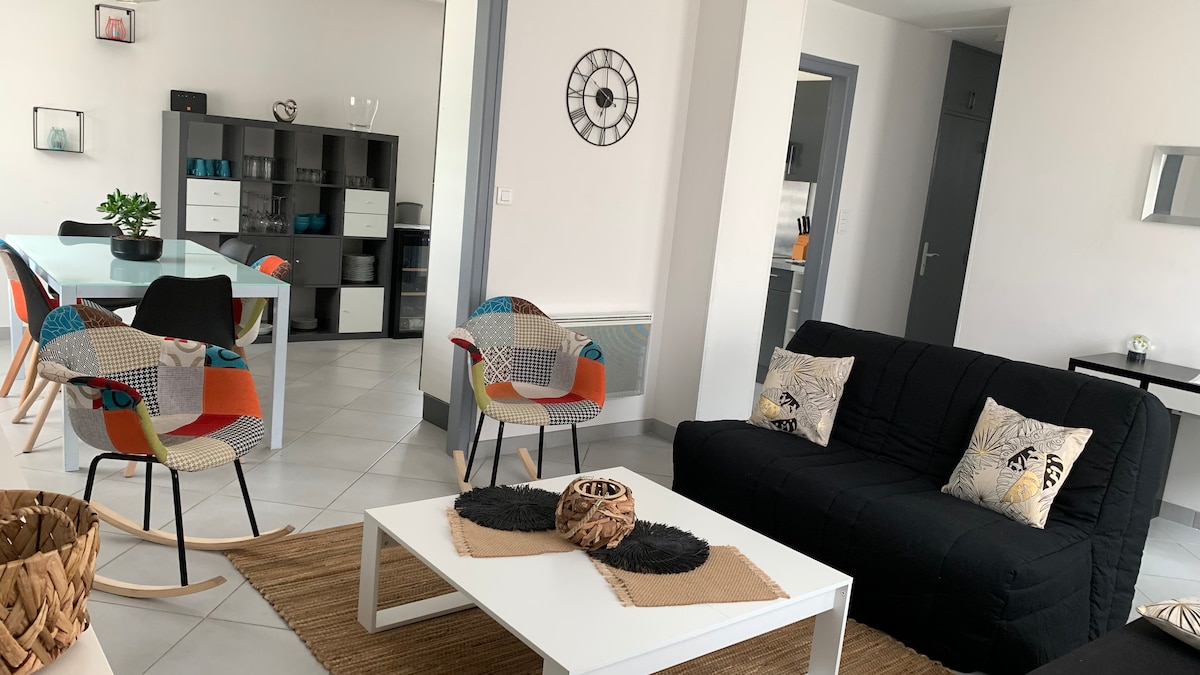 Graziosa casa situata in un villaggio vinicolo della montagna di Reims a 5 minuti dalla stazione TGV di Bezannes e dal suo campo da golf, a 5 minuti dal centro commerciale Leclerc Champfleury e a 15 minuti dal centro di Reims. Questa casa con ingresso indipendente può ospitare fino a 6 persone. È composta da 2 camere da letto e una terza con un BZ, la cucina è dotata di lavastoviglie, forno, forno a microonde, piano cottura elettrico e una lavatrice nella stanza con doccia, WC separato.