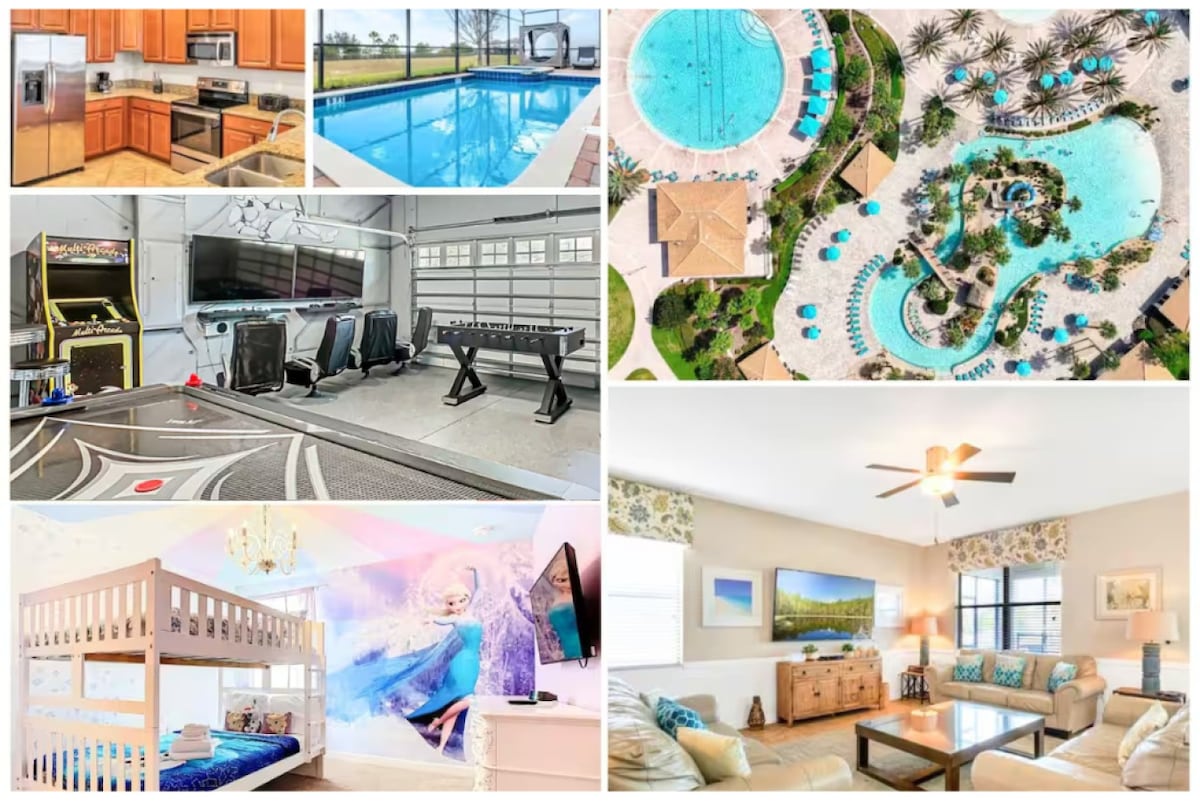 Il perfetto equilibrio tra DESIGN ELEGANTE, COMFORT DI LUSSO e INTRATTENIMENTO SENZA FINE, situato in una splendida posizione con vista mozzafiato nel vasto Reunion Resort di 9 chilometri quadrati. Avrai la tua piscina privata, una spa con cascata, una sala cinema-giochi a tema STAR WARS con flipper, giochi arcade classici e karaoke, una sala giochi per bambini a tema MARVEL con scivolo e letti a castello, l'ultima Xbox Series S, un'ampia piscina di 186 metri quadrati, un focolare e persino un armadio di HARRY POTTER nascosto sotto le scale, a pochi minuti da Disney.