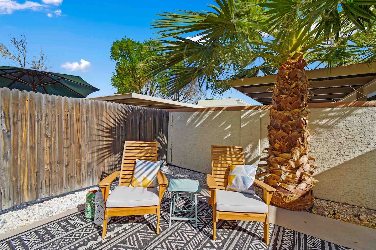 Lo spazio: Benvenuti a Palm Paradise, il vostro rifugio rilassante nel cuore della città vecchia di Scottsdale. Ristrutturato nell'ottobre 2024, questo appartamento unisce un elegante design desert-boho con tutti i comfort di una casa, creando uno spazio bello e funzionale. Rilassati sull'accogliente divano componibile in velluto a coste verdi, perfetto per un pisolino, o esci sul balcone privato per ammirare spettacolari viste sul tramonto sulla Camelback Mountain. Entra nella tranquilla camera da letto con letto king-size e lenzuola di alta qualità.
