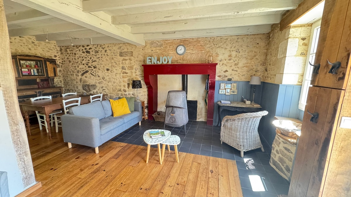 Benvenuti nel nostro tradizionale piccione del XIX secolo splendidamente restaurato, nel cuore della regione del Grande Champagne del Cognac. Ristrutturato con cura per offrire una spaziosa disposizione a pianta aperta con aria condizionata e un bruciatore a pellet, adatto a tutte le stagioni. Progettato per il massimo comfort, ogni dettaglio è stato realizzato per garantire un soggiorno indimenticabile, dai servizi moderni a quegli affascinanti tocchi rustici. Perfetto per feste speciali o una vacanza rigenerante. Il rifugio definitivo per il 2026.