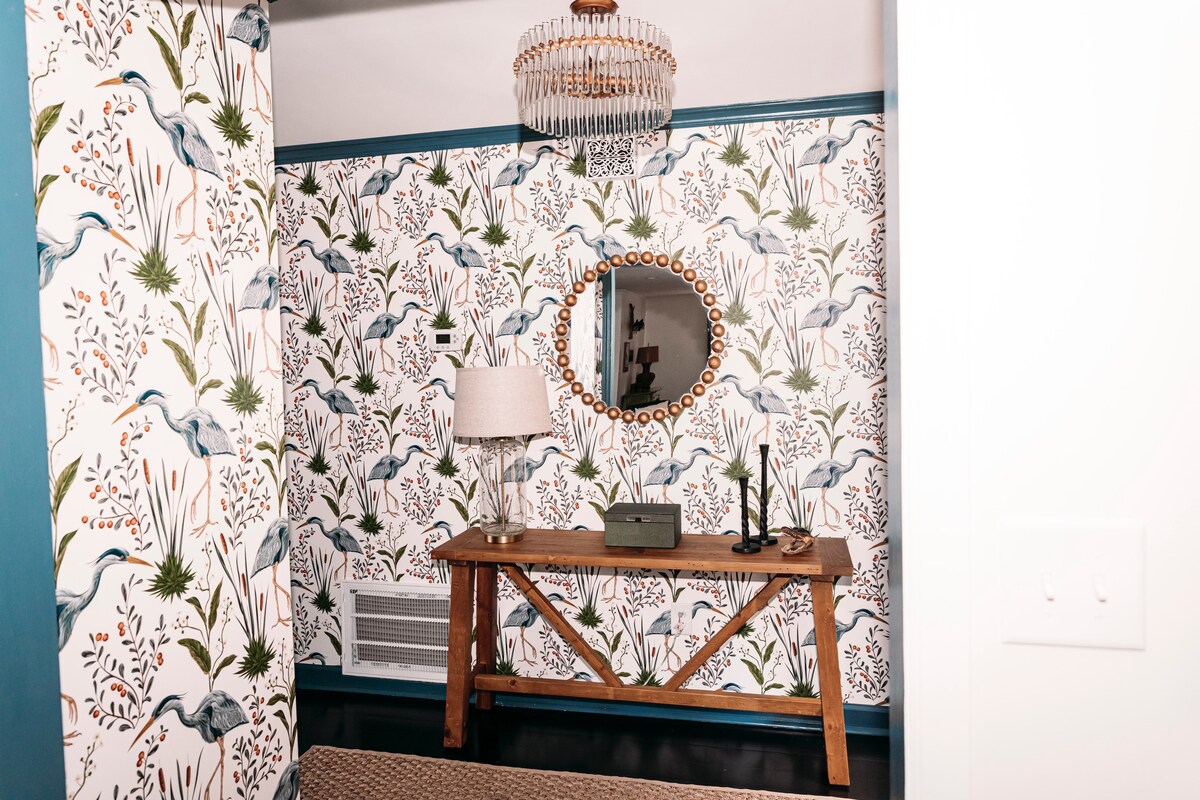 Ti diamo il benvenuto al The L @407, un'elegante suite privata nello storico quartiere di Wesley Heights, a pochi minuti dall'Uptown di Charlotte. Raggiungi a piedi il Bank of America Stadium, il Truist Field, ristoranti, birrerie e locali notturni. Arredata con cura con tocchi vivaci e comfort moderni, questa spaziosa suite offre tutto il necessario per un breve soggiorno in pieno relax o per una permanenza prolungata. Goditi la camera da letto con letto king-size, la vasca da bagno in stile spa, la cucina completa, il soggiorno, l'area di lavoro, l'ingresso indipendente con check-in tramite tastierino e l'accogliente portico.