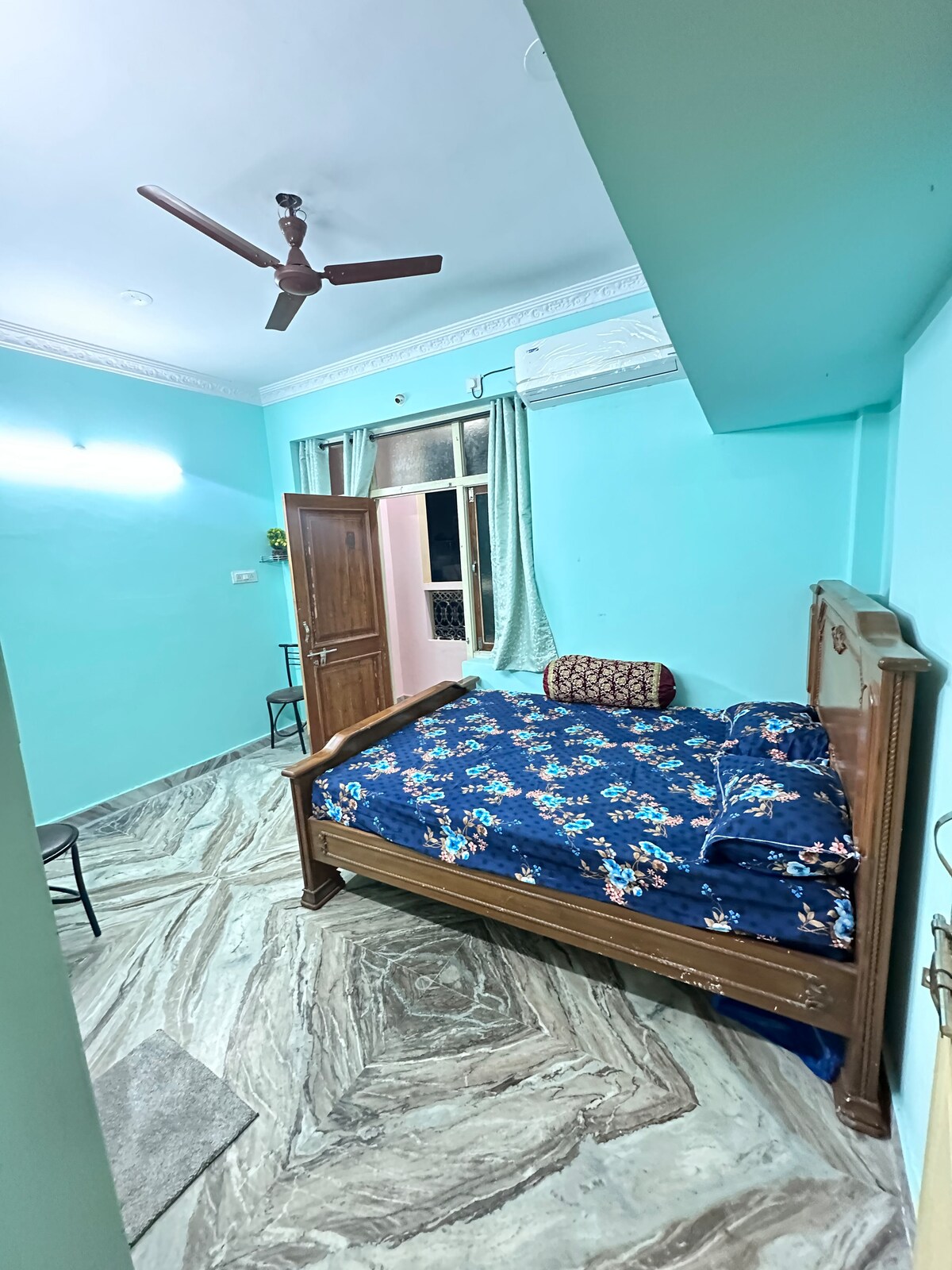 Welcome to your ideal home away from home. Our apartment is on the first floor of the villa without a lift, exclusively for the families only. Unmarried couples and Bachelors are restricted. Our apartment is spacious. A/C in both the bedrooms, with attached bathrooms. Featuring two spacious bedrooms, our retreat ensures a peaceful night's sleep . The master bedroom is with a king-size bed, while the second bedroom is with a queen-size bed, and two additional floor mattresses.