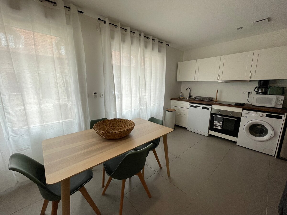 Appartamento T3 Tranquillo e Confortevole Situato in una zona tranquilla, questo appartamento T3 è situato in posizione ideale vicino all'aeroporto, Groupama Stadium, LDLC Arena, CNPE. 3 letti matrimoniali, cucina completamente attrezzata, uno spazio di lavoro dedicato, perfetto per il telelavoro. Per il vostro relax, una TV a grande schermo è a vostra disposizione. Potrete anche godere di una terrazza esterna con salotto da giardino. A piedi si trovano negozi nelle vicinanze. Parcheggio privato.