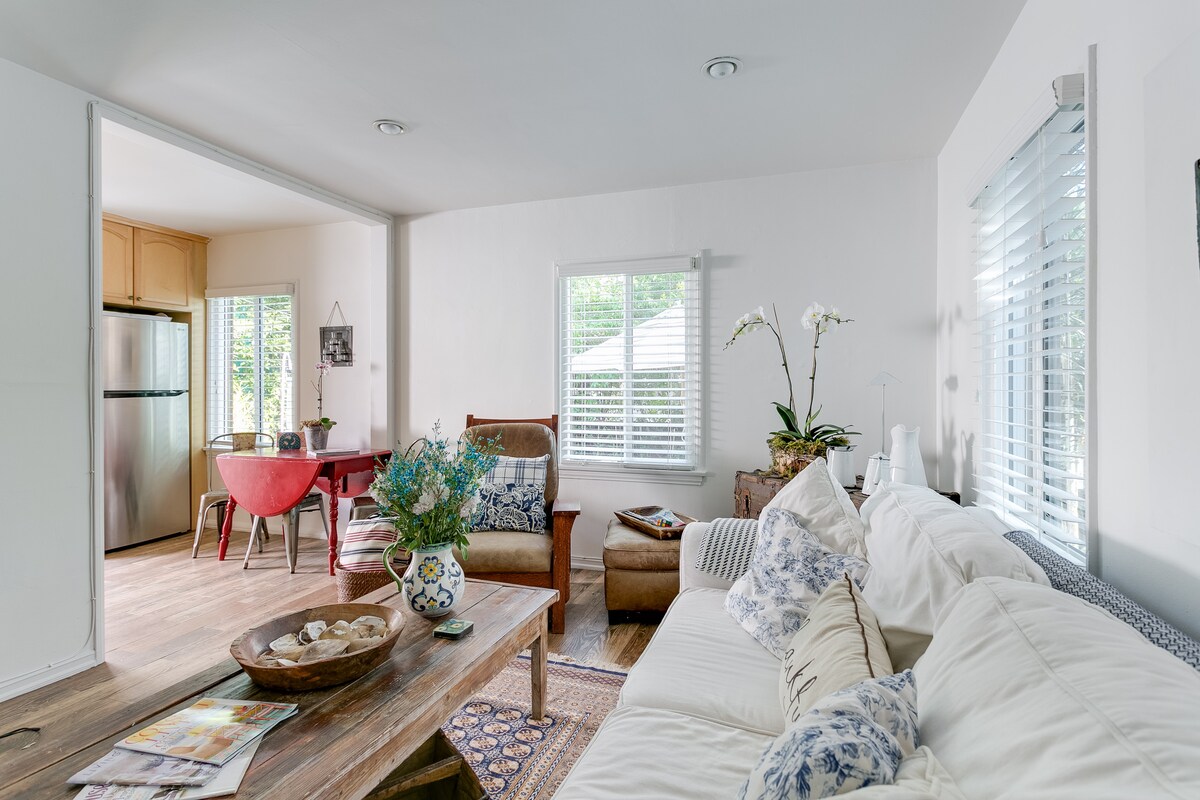 (Febbraio 2025 - Il villaggio di Topanga e le case sono state risparmiate dall'incendio di Palisades) Ti diamo il benvenuto all'Orchard House Retreat! Questa casa privata di 65 metri quadrati si trova in un'antica foresta di querce nel canyon di Topanga, vicino al Topanga State Park, al villaggio e alla spiaggia! È un incantevole alloggio con 1 camera da letto e 1 bagno, un accogliente soggiorno/sala da pranzo, una cucina moderna e una terrazza. C'è una cucina ben fornita e un frutteto. Tieni presente che ci sono due rampe di scale fino al rifugio, quindi è necessario essere in grado di salire le scale. Guarda le foto.