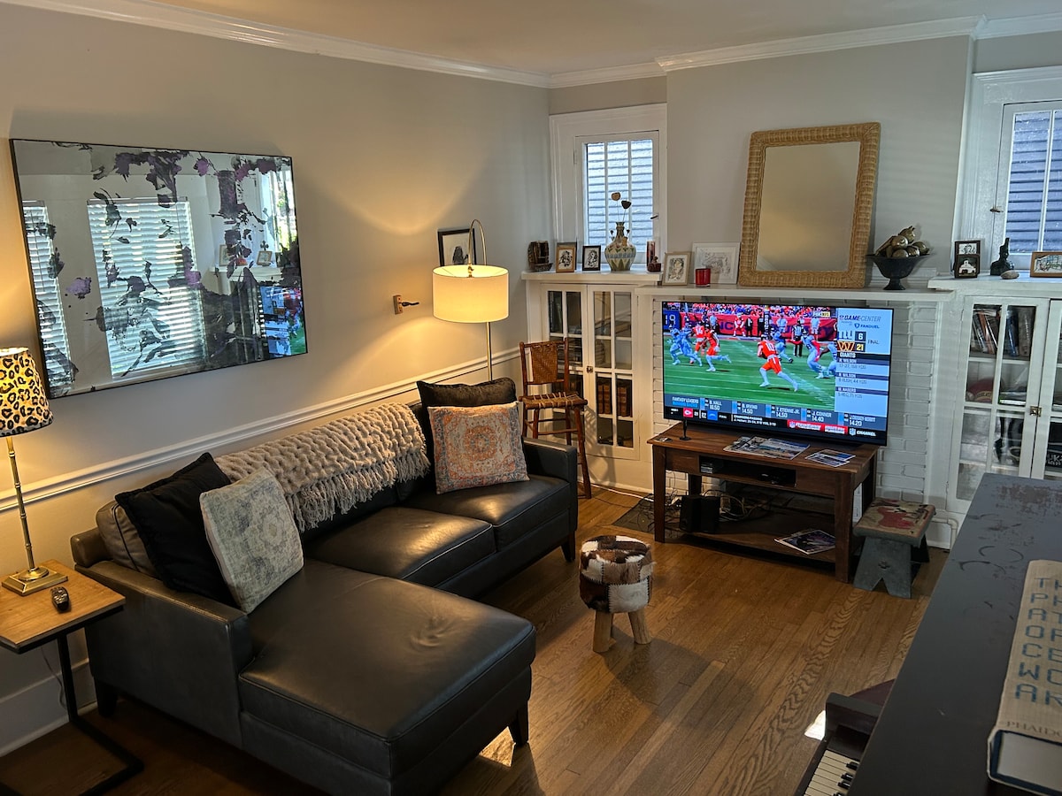 Affascinante casa con 2 camere da letto e 1 bagno a North Chattanooga, a pochi minuti dal centro, a pochi passi dalla zona alla moda di NShore, dal Coolidge Park, con vista sul fiume Tennessee, con negozi, ristoranti e divertimenti su FRZR AVE!~NUOVI elettrodomestici da cucina! Spazioso~Arredamento unico/artistico. Goditi una tazza di caffè sul nostro grande portico anteriore. Goditi il sole e la vista sulle montagne dal patio sul retro. Letti puliti e comodi. Wifi veloce e affidabile. Parcheggio in strada -1 auto. Chiedici informazioni sul noleggio di scooter per esplorare la città! Nuova gestione: aspettati un'esperienza di alto livello!