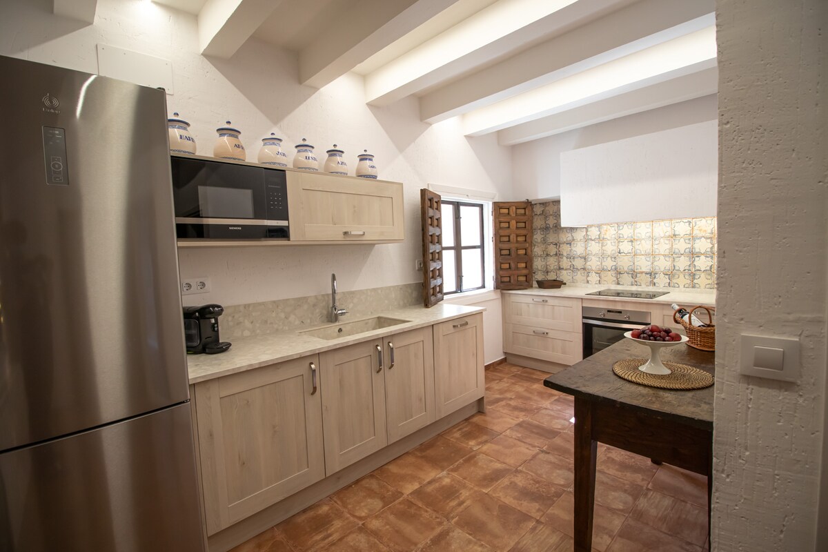 Il più piccolo dei nostri alloggi è la bella e accogliente Torre Mangana. Questo accogliente alloggio di 70 m2 e soffitti con travi a vista, dispone di due camere da letto con letto matrimoniale e un bagno. Dispone inoltre di un ampio e confortevole soggiorno-sala da pranzo e di una cucina completamente attrezzata, con un eccellente divano letto di 160 cm per 200 cm, giochi da tavolo e Smart TV. Da segnalare la vista mozzafiato dal salone, sull'imponente Hoz del Huécar, che ti trasporterà in un'altra epoca.