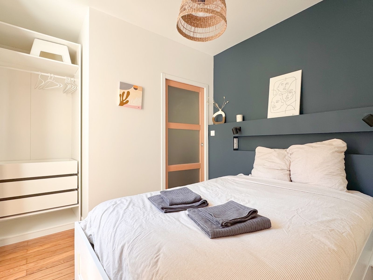 Goditi un alloggio elegante nel centro della città, tranquillo, luminoso e ben accessoriato, a 2 passi da Rue de la Liberté. Troverai il comfort necessario per il tuo soggiorno turistico o professionale. Questo appartamento può ospitare 2 adulti e 1 bambino e/o 1 neonato. È dotato di un letto matrimoniale 140 cm (biancheria da letto nuova), un divano che può essere utilizzato come letto per un bambino (non è convertibile, 80x175 cm) e un letto ombrellone (pronto su richiesta).