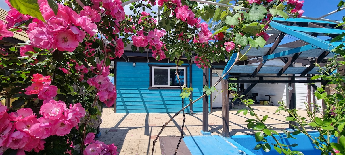 ☆ Faremo del nostro meglio per rendere la tua giornata confortevole e rilassante. ☆ Lo spazio anteriore vende makgeolli in movimento (spazio separato) Orari di vendita del makgeolli (8:00 - 20:30) Consulta la foto dettagliata e prenota. ☆ Il nostro alloggio è adatto a 4 persone (massimo 7 persone) (Gratuito per un massimo di 4 persone, supplemento di 15.000 KRW a persona per più di 4 persone) ☆ L'alloggio è ben riscaldato in inverno ☆ C'è una valle con un ruscello che scorre dietro l'alloggio, così potrai divertirti a giocare nell'acqua. ☆ Puoi goderti molte attrazioni intorno alla valle di Baekun, al lago Sanjeong, all'osservatorio paesaggistico del ferro, ecc. ☆ Puoi raccogliere tutto ciò che riesci a mangiare nello stesso giorno (lattuga, cipolle, ecc.) nel campo sul retro (estate) ☆L'esterno è uno spazio comune Vietato fumare☆ all'interno ☆ Il numero massimo di ospiti è ★7 (ideale per le famiglie ~) -Only House - Ampio parcheggio davanti casa - È disponibile un barbecue esterno (griglia, pinze fornite) (carbone, piatto di carne preparato individualmente) Disponibile in inverno - Braciere disponibile (uso autonomo) - Puoi giocare nella valle attraverso le scale sul retro (estate)