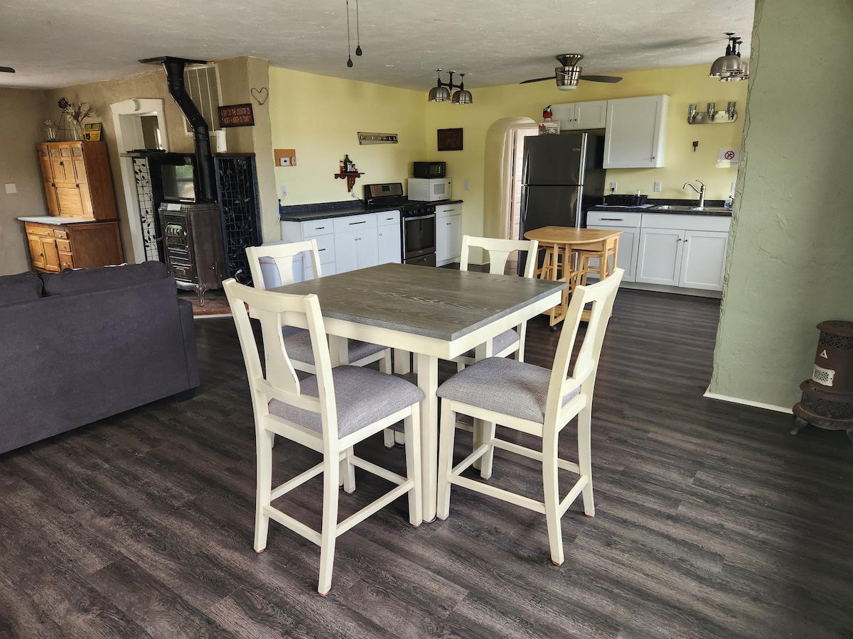 Fuggi da tutto al Rock Canyon Ranch. Questa vacanza perfetta offre 640 acri privati di splendidi terreni, fauna selvatica e molte attività in loco e nelle vicinanze. Nessun vicino in giro per chilometri: porta i tuoi quad, cavalli, scarponi da trekking, mountain bike o qualsiasi cosa tu voglia ed esplora il sistema di sentieri privati in loco. Goditi il soggiorno nella casa che troverai pulita e accogliente. Grande cucina a vista, tavolo da biliardo, grande TV, braciere, braciere e molto altro ancora. Starlink Wifi