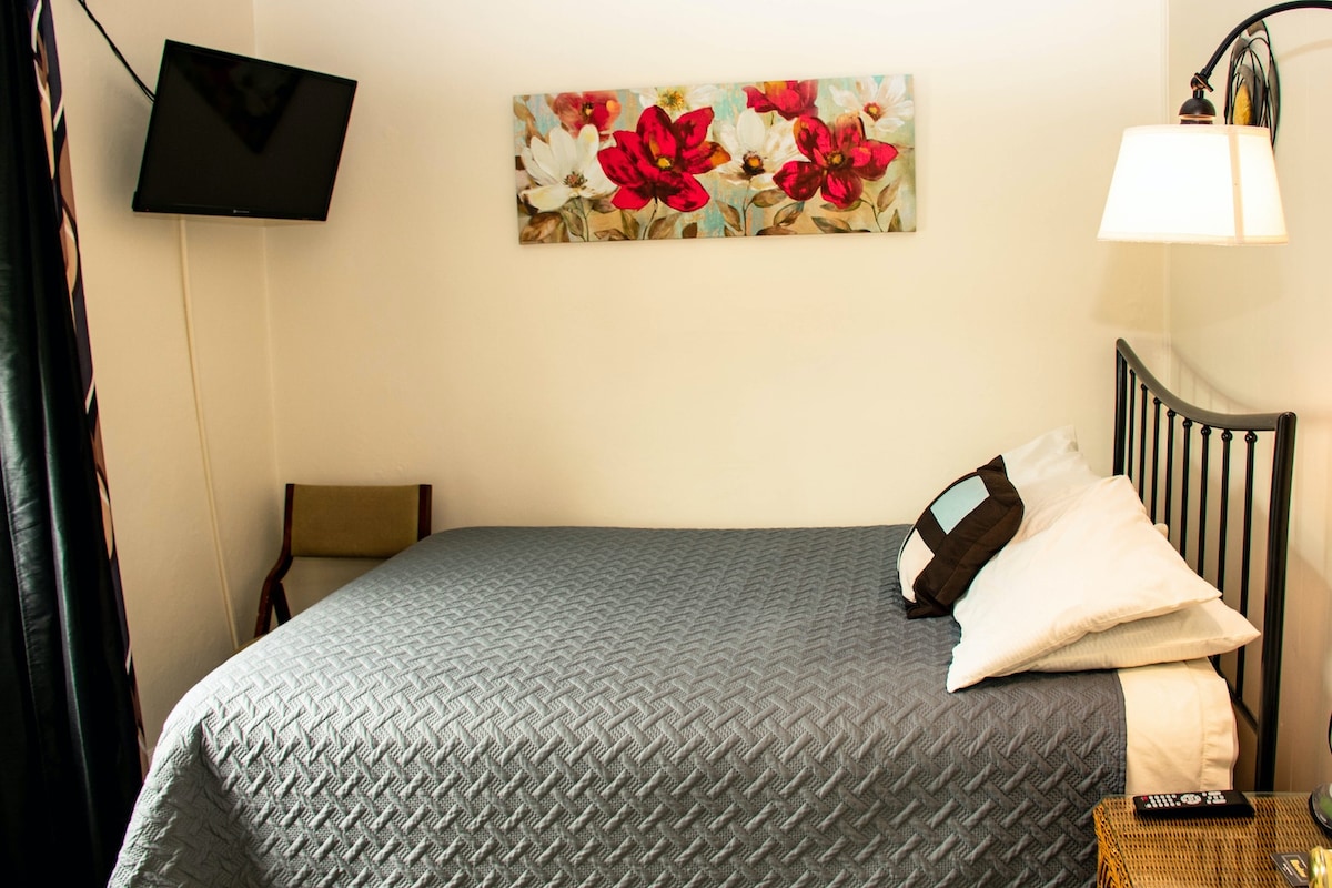 190piedi quadrati• Viste varie •Non fumatori L'unità 19 è un'accogliente unità al piano terra con un letto matrimoniale, un piccolo frigorifero, un forno a microonde, una TV a schermo piatto e un bagno privato. Questa pittoresca stanza è pensata per consentire ai viaggiatori di essere in tutta comodità.