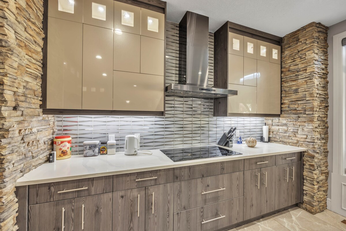Rilassati in questa moderna suite privata a soli 3 minuti da un lago panoramico, un campo da golf, la spiaggia principale e i ristoranti locali. A soli 20 minuti dall'aeroporto di Calgary e dal centro di Calgary, è ideale sia per il relax che per la comodità. ✔ Può ospitare fino a 6 persone | 3 letti e 1 bagno ✔ Cucina completamente attrezzata con piano cottura e macchina da caffè Keurig ✔ Camere confortevoli ✔ Accogliente soggiorno moderno con soffitti alti ✔ TV con Netflix e Amazon Prime ✔ Zona pranzo con bancone, Wi-Fi ad alta velocità e lavanderia in camera ✔ Ingresso privato
