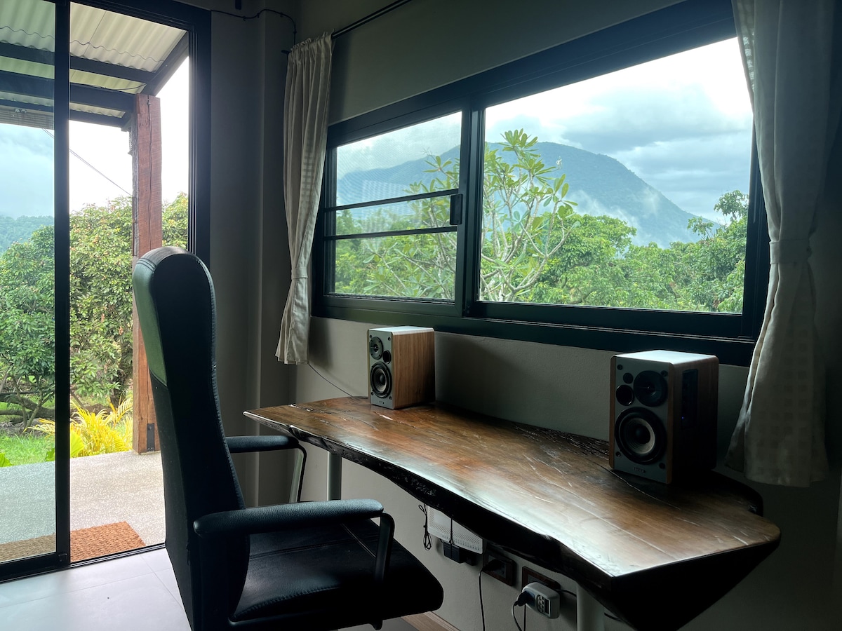 🌿 Two-story small wooden cabin surrounded by fruit trees. Tucked away next to our art studio, the kitchen on the ground floor provides a space for cooking. Go up the stairs reveals a natural connection with open balcony. With a bedroom that be opened to the wind, Stay close to the embrace of forest all day long. At dusk when the weather is cool, we sit around the bonfire, Let our hearts be warm. Listen to eternal stars, Blessed the energy from MotherNature (Pachamama) and Doi Luang ChiangDao