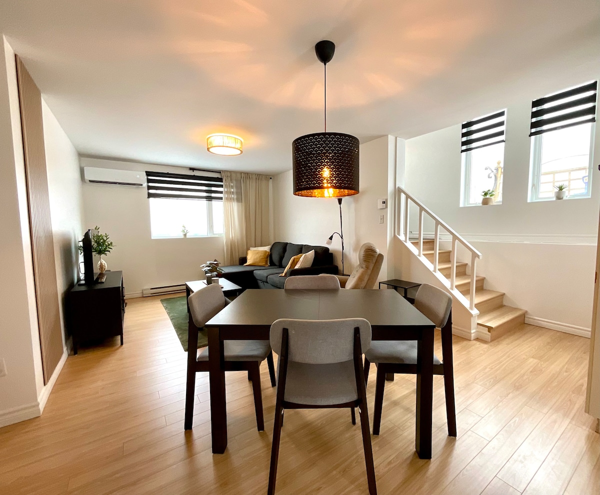Accogliente appartamento che può ospitare almeno 4 persone. Possibilità di ospitare 1 persona in più con un supplemento.(30$ in più a notte ) La terza stanza include un letto da campo ) Molto vicino al centro della città e a pochi minuti a piedi da un negozio di alimentari e a circa 10 minuti a piedi dal cuore del centro della città dove si trovano molti ristoranti,negozi,caffè,SAQ,ecc. Facile accesso alla pista ciclabile.