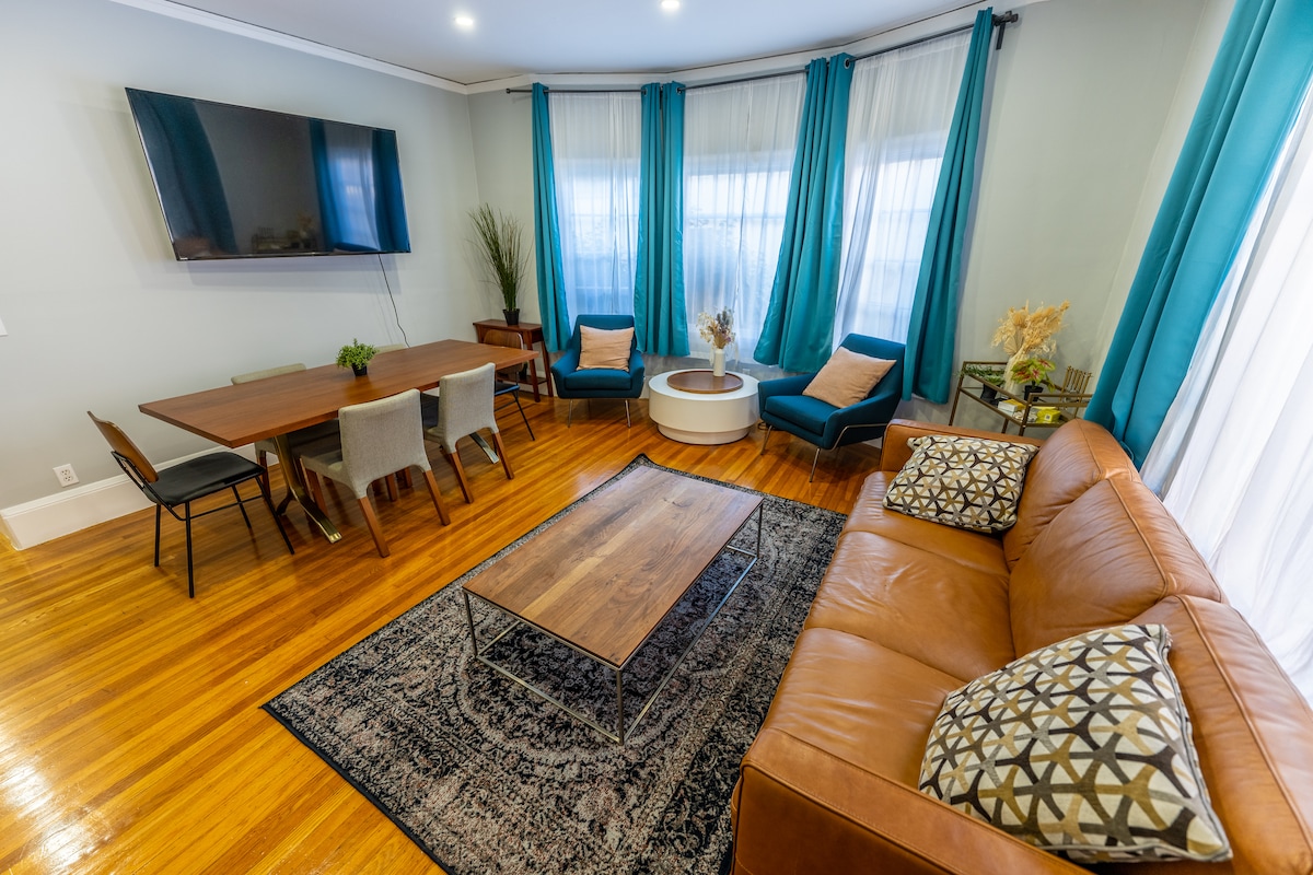Ti diamo il benvenuto in questo comodo rifugio ad Adam's Point, vicino al lago Merritt. L'appartamento è di 83 metri quadrati, dispone di lavatrice/asciugatrice, cucina completa, pavimenti in cemento lucido con tappeti nel soggiorno e nella camera da letto principale e parcheggio in loco. Si trova al piano terra di una casa di 3 piani. L'alloggio può ospitare fino a 4 adulti e un neonato. Soggiornerai vicino alle autostrade 580, 980 e 880, alla Route 24 e a 10 minuti a piedi dal lago Merritt, dove il sabato si tiene uno dei più grandi mercati contadini.