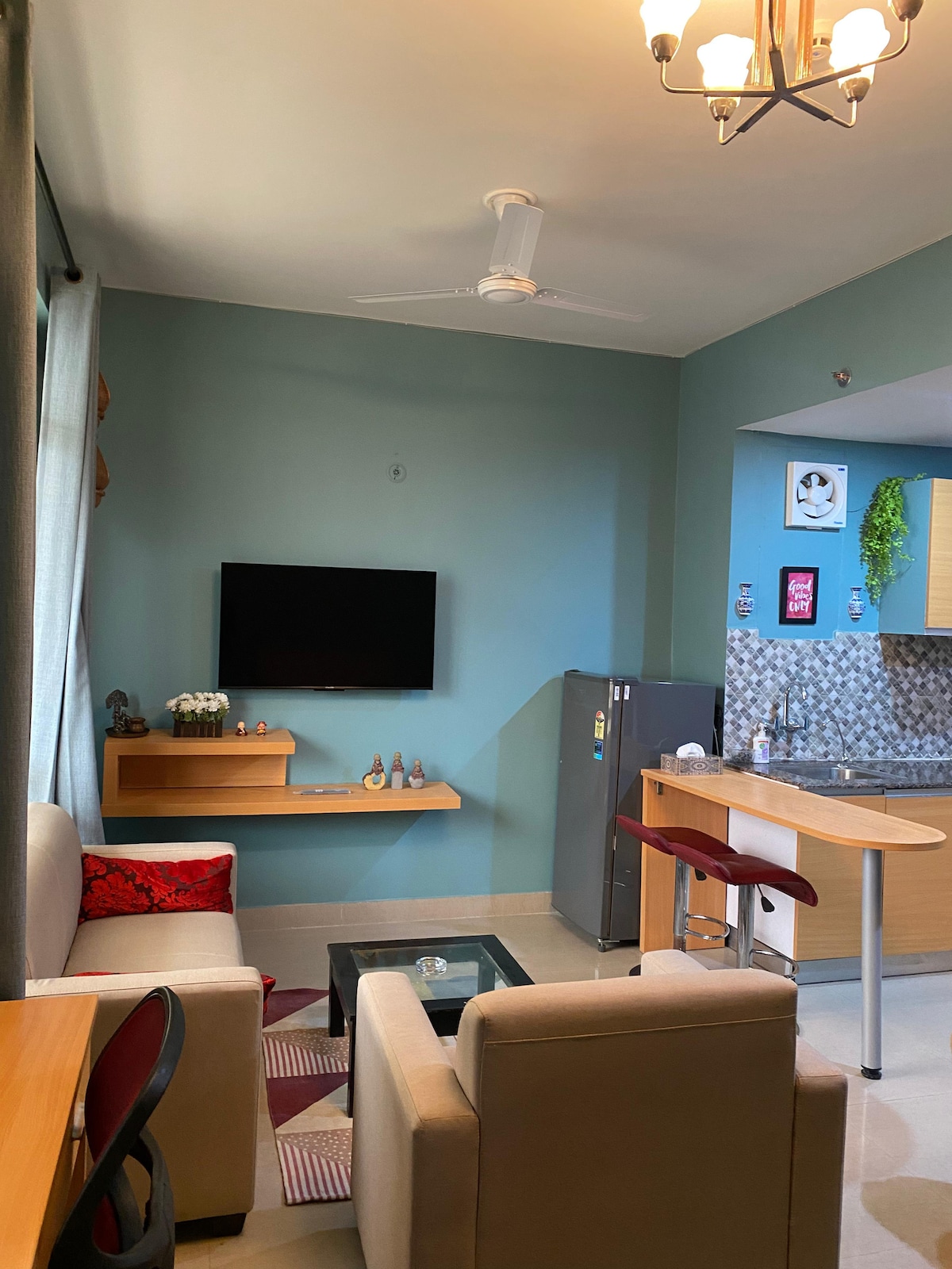 Lussuoso monolocale completamente arredato con tutti i comfort moderni disponibili a Greater Noida, vicino alla stazione della metropolitana. Monolocale lussuoso , speciale e adatto alle coppie a Greater Noida, vicino a Expo Mart. Cosa ti piacerà: Interni ✔ unici: goditi gli interni affascinanti. Comfort ✔ moderno: uno spazio splendidamente arredato con un letto comodo, comodi posti a sedere e arredi eleganti. Cucina ✔ completamente attrezzata: prepara i tuoi pasti preferiti con facilità. WiFi ✔ veloce e Smart TV: rimani connesso e divertiti.