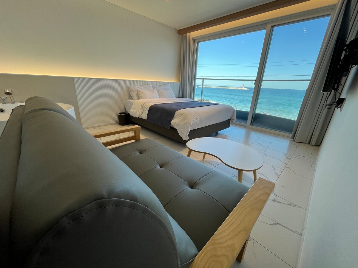 Ciao. Siamo Onda, che studia e fornisce una varietà di spazi di relax. Auguriamo a tutti coloro che soggiornano qui un soggiorno confortevole e felice. [Presentazione dell'alloggio] Speriamo che possiate creare ricordi felici nel nostro alloggio, dove potrete rilassarvi più comodamente di casa vostra, anche in uno spazio sconosciuto, ammirando la splendida vista sul mare che si vede dalla camera. [Tipo di camera] Monolocale (1 letto matrimoniale) + bagno * Le lenzuola sono fornite in base al numero di persone prenotate.